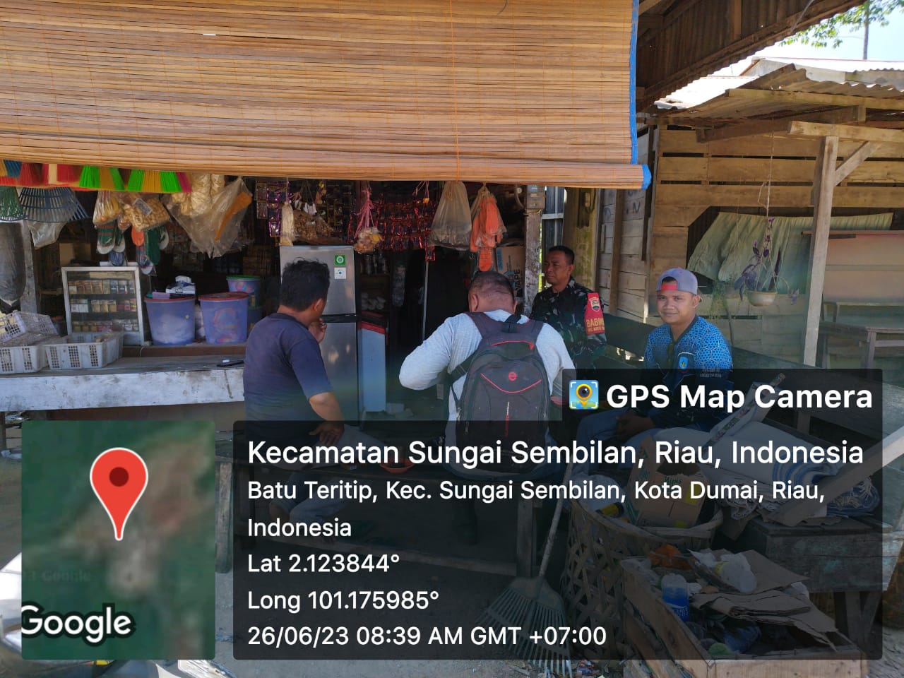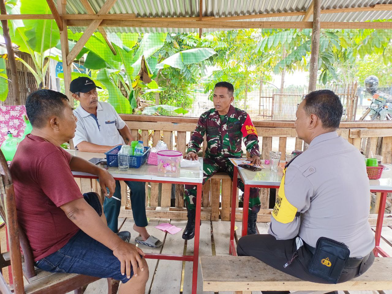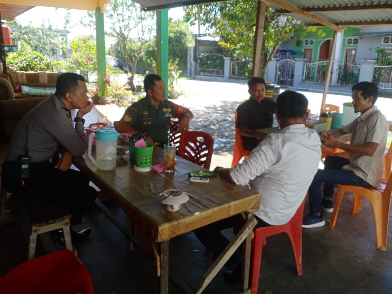 Babinsa Serka J Tanjung dan Bhabinkamtibmas Bripka Bowo laksana komsos bersama Ketua RT 03 RW 17 Sairi Jalan Cendrawasih Kelurahan Sidomulyo Barat Kecamatan Tuah Madani, Pekanbaru, Selasa.