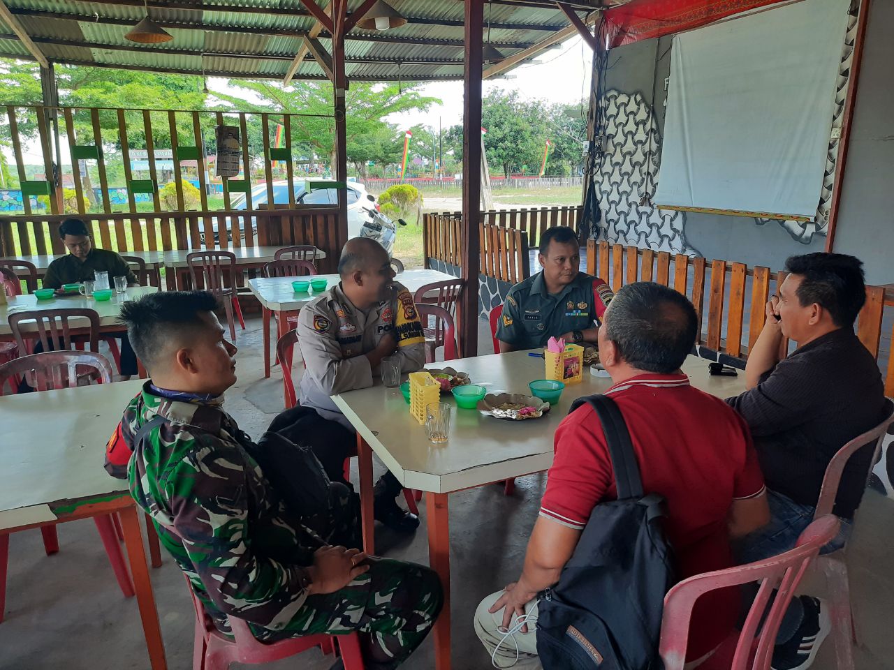Babinsa Koramil 06/Sukajadi Kodim 0301/Pekanbaru, Serda Yasir Anhar melaksanakan komunikasi sosial bersama petugas pengawas Pemilu dari PPK dan PPS membahas tahapan dan koordinasi menuju Pemilu aman dan damai pada tahun 2024.