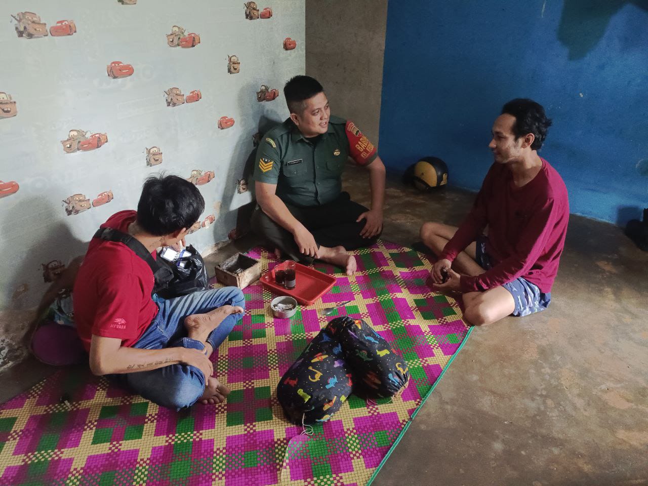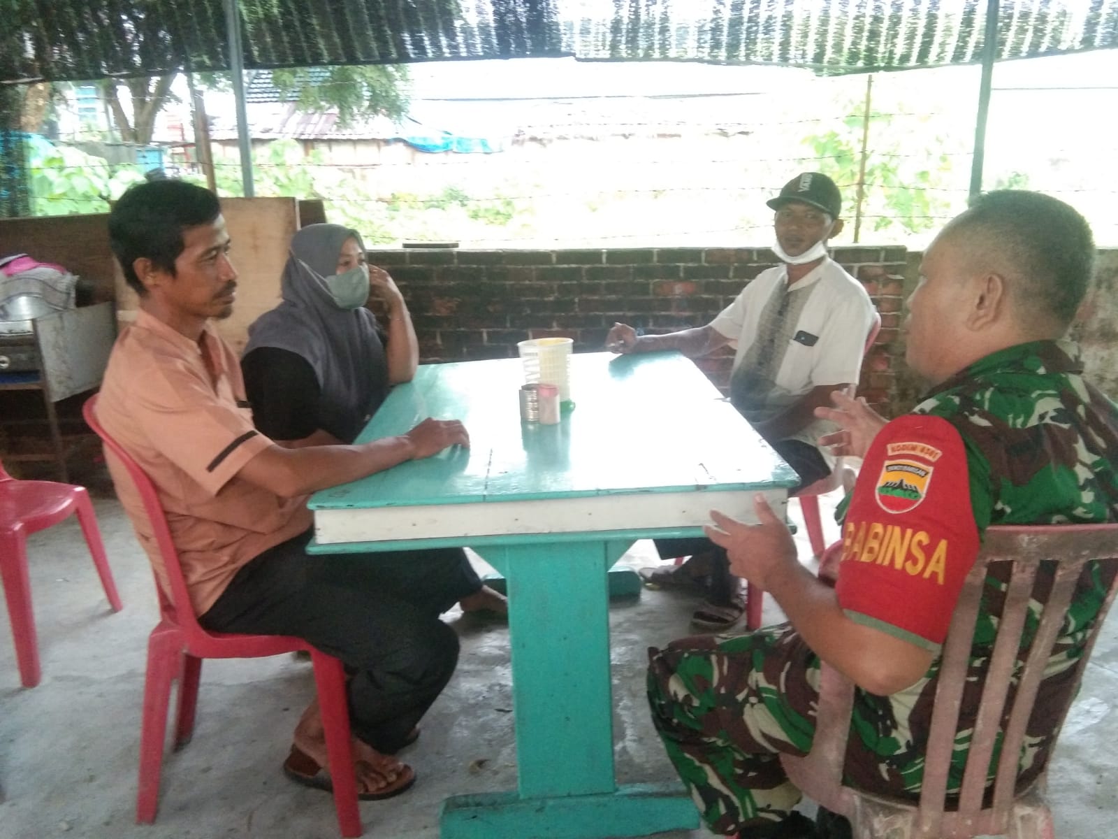Babinsa Koramil 06/Sukajadi Kodim 0301/Pekanbaru, Sertu Jhoni Janan melaksanakan komunikasi sosial dengan Muslim, Arul dan Wati yang merupakan warga binaan Jalan Ahmad Yani RT 02 RW 02 Kelurahan Pulau Karomah Kecamatan Sukajadi, Sabtu.