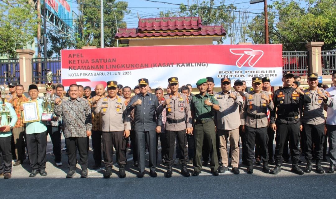 Komandan Kodim (Dandim) 0301/Pekanbaru, Letkol Kav Yuli Eko Hadiyanto, S. Sos diwakili Pasi Ops Kapten Inf Suhartono menghadiri Apel Ketua Satkamling Polresta.