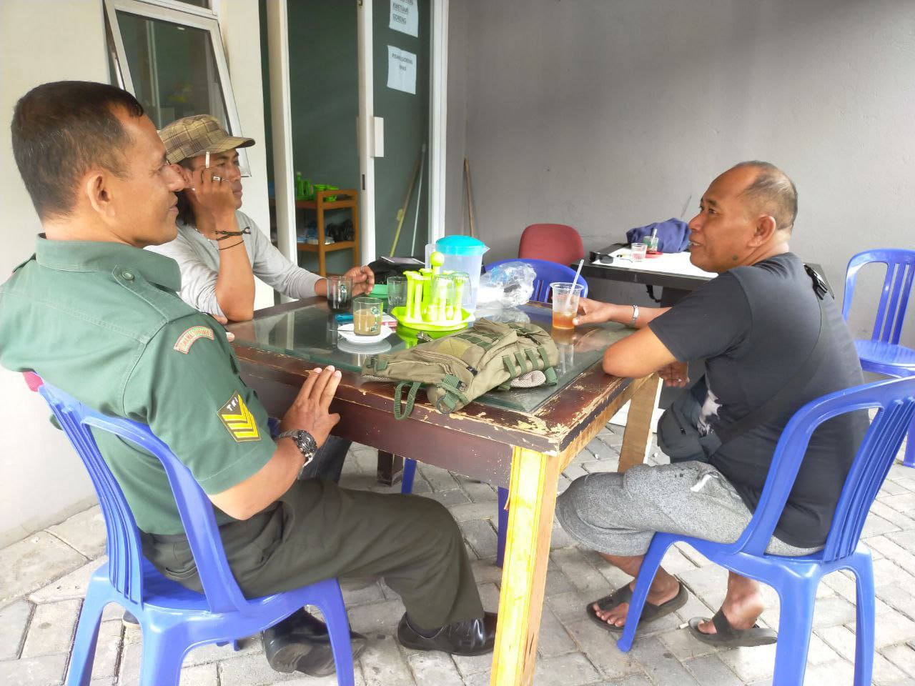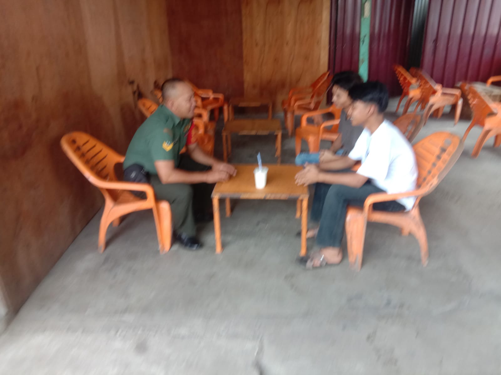 Guna mempererat tali silaturahmi, Sertu Sareh Babinsa Koramil 02 Bukit Kapur jajaran Kodim 0320 Dumai melaksanakan kegiatan komunikasi sosial dengan tokoh masyarakat dan tokoh pemuda di Jalan Soekarno Hatta RT 05 Kelurahan Bagan Besar, Rabu.