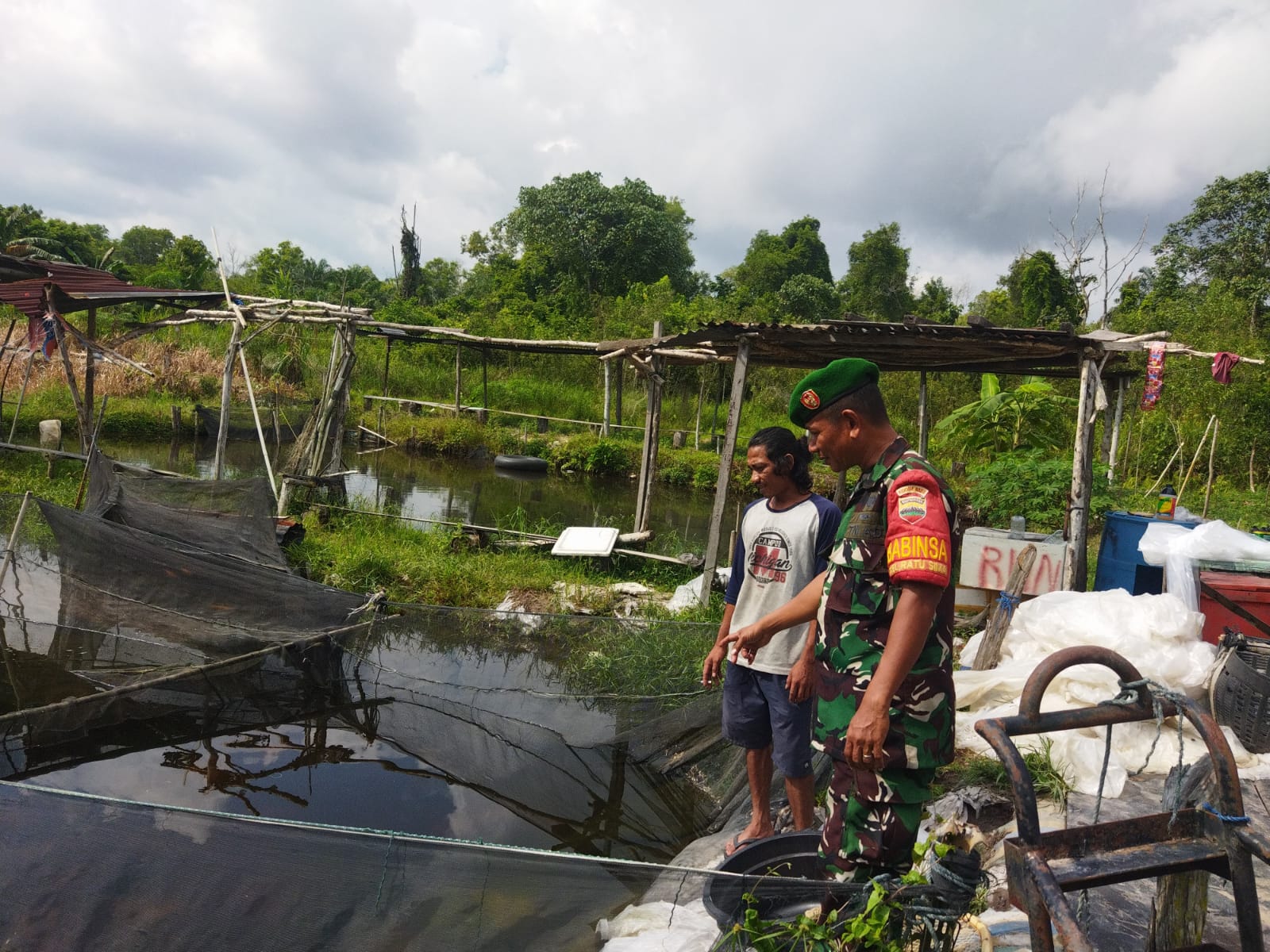 Dalam rangka mendukung program pemerintah terkait peningkatan ketahanan pangan, Babinsa Kodim 0320/Dumai, Sertu Abu Kasim Litiloly mendampingi dan memotivasi membudidayakan ikan mas milik pak Wanda di Jalan Bukit Datuk Kelurahan Bukit Datuk.