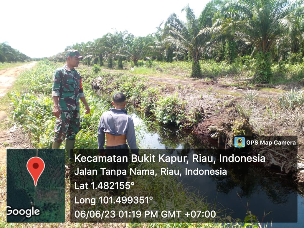 Dalam rangka mendukung upaya pemerintah dalam mencegah kebakaran hutan dan lahan agar tidak terjadinya kabut asap, Babinsa Koramil 06/Sukajadi Kodim 0301/PBR, Sertu Wiyono dan MPA menggunakan sepeda motor dinas roda dua melakukan patroli Karhutla.