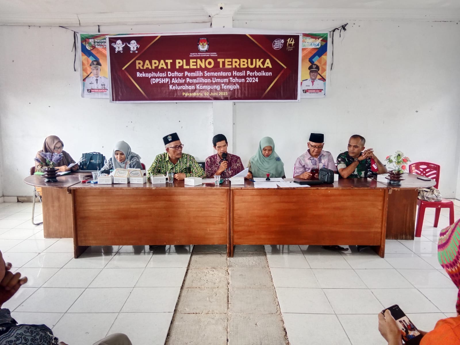 Bintara Pembina Desa (Babinsa) Koramil 06/Sukajadi Kodim 0301/Pekanbaru, Serda T H Batuara menghadiri rapat pleno terbuka rekapitulasi Daftar Pemilih Sementara Hasil Perbaikan (DPSHP) tingkat kelurahan Pemilu.