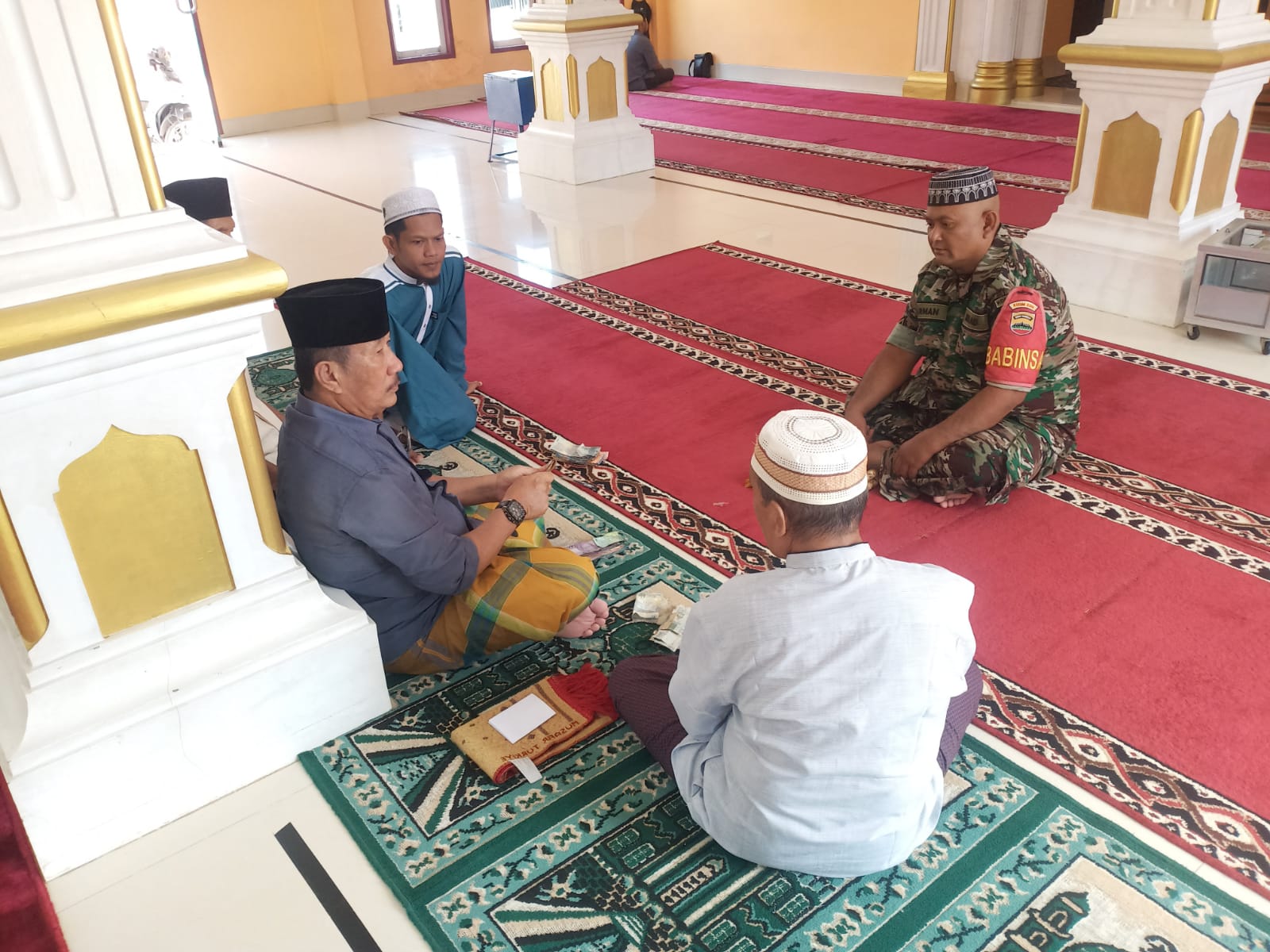 Bintara Pembina Desa (Babinsa) Koramil 06/Sukajadi Kodim 0301/PBR, Serka Toni Efendi menghadiri acara Halalbihalal di Masjid Baitul Arsy Delima Kelurahan Delima Kecamatan Binawidya, Rabu malam (17/05/2023) pukul 20.00.