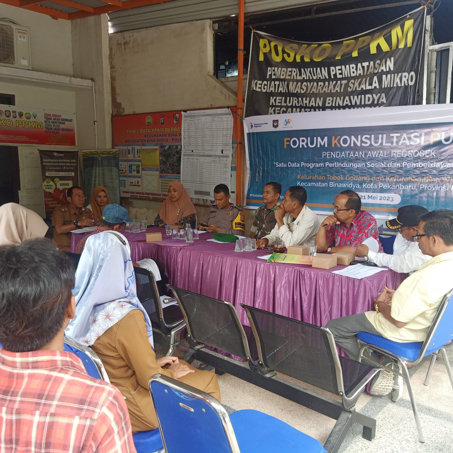 Tampak hadir rapat FKP Regsosek, Lurah Binawidya Syamsurizal, SE Babinsa Sertu Asyari, Bhabinkamtibmas Bripka Diko Andriansyah, SH, pegawai BPS Riau Ismi Hadjar Putri, Asisten fasilator I Siti Waryanti, Asisten II Prayoga Darmawan, Ketua RT /RW.
