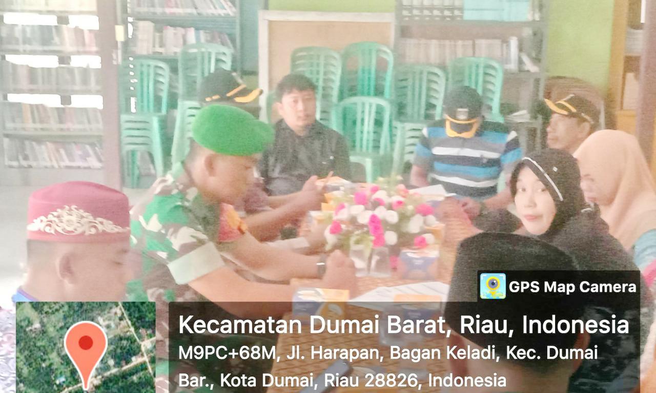 Babinsa Kodim 0320/Dumai, Serda Priyo Sudarmo menghadiri rapat koordinasi Forum Konsultasi Publik (FKP) pendataan awal Registrasi Sosial dan Ekonomi (Regsosek), Senin.