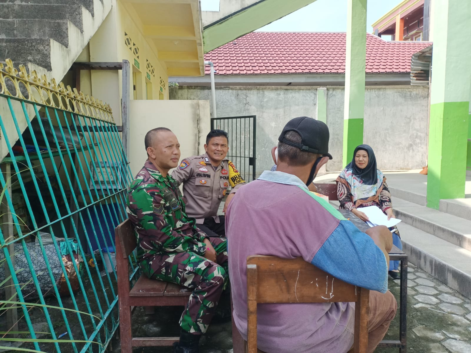 Babinsa Koramil 06/Sukajadi Kodim 0301/Pekanbaru, Sertu Wiyono dan Bhabinkamtibmas Kelurahan Air Putih melaksanakan komunikasi sosial bersama tokoh masyarakat Jalan Garuda Sakti Km 2 Kecamatan Tuah Madani, Sabtu.