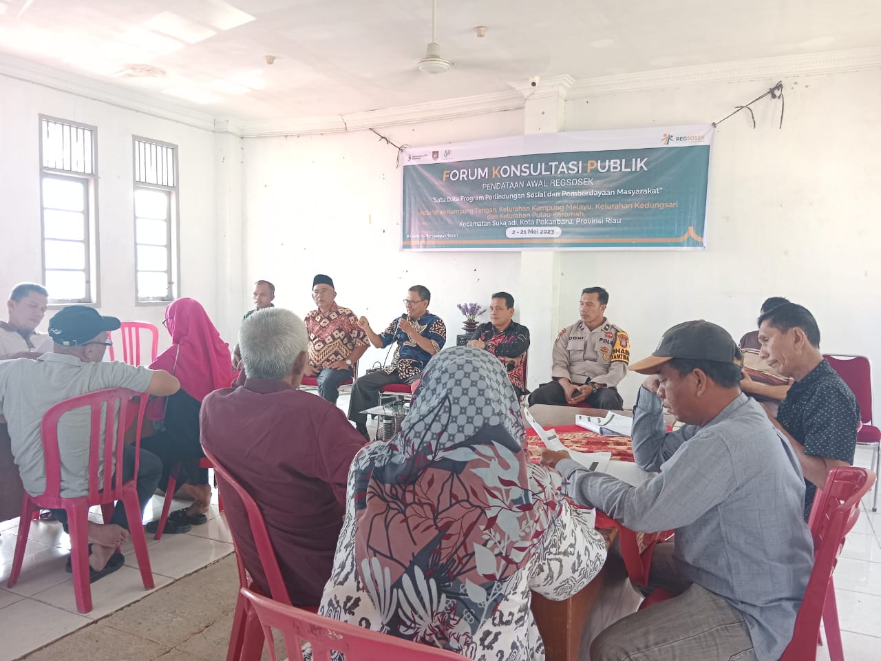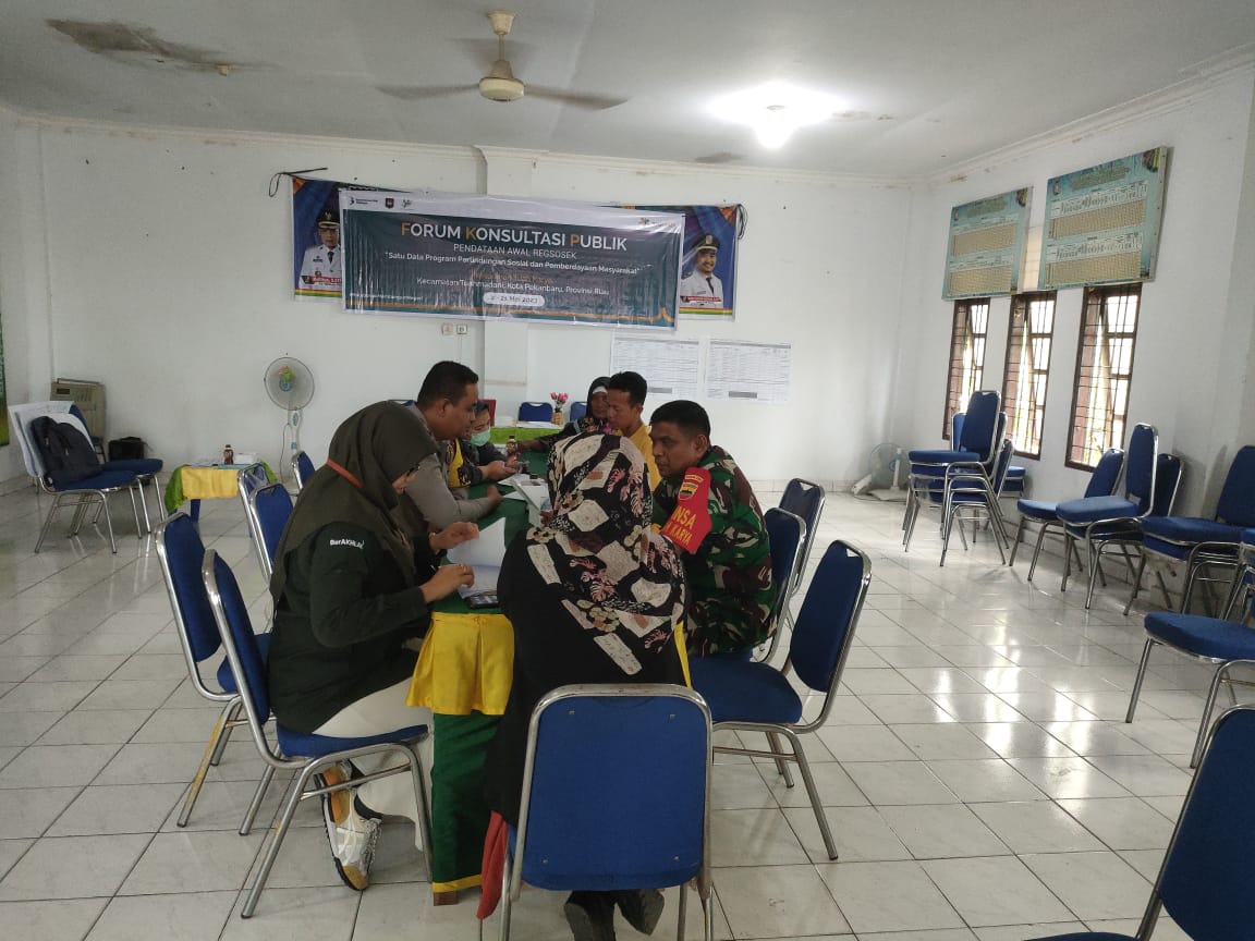 Babinsa Koramil 06/Sukajadi Kodim 0301/Pekanbaru, Serda Tulus Hatiku Batuara menghadiri giat Forum konsultasi publik pendataan awal Regsosek (Registrasi Sosial Ekonomi) di aula kantor Kampung Tengah Jalan Semangka Kecamatan Sukajadi, Minggu.
