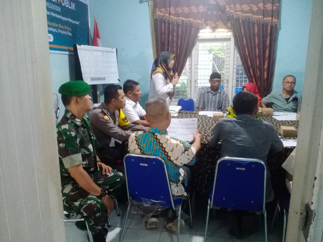 Babinsa Koramil 06/Sukajadi Kodim 0301/PBR, Serka Nasaruddin menghadiri kegiatan Forum Konsultasi Publik (FKP) pendataan awal Registrasi Sosial Ekonomi (Regsosek) yang bertempat di Aula Kantor Lurah Tuah Karya Jalan Budidaya Kecamatan Tuah Madani,.