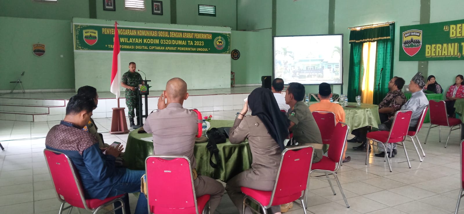 Dalam rangka meningkatkan sinergitas antar Instansi, Kodim 0320 Dumai menggelar komunikasi sosial (Komsos) dengan Aparat Pemerintahan di Aula Sudirman Makodim Jalan Sultan Syarif Kasim kota Dumai, Jumat, 12 Mei.