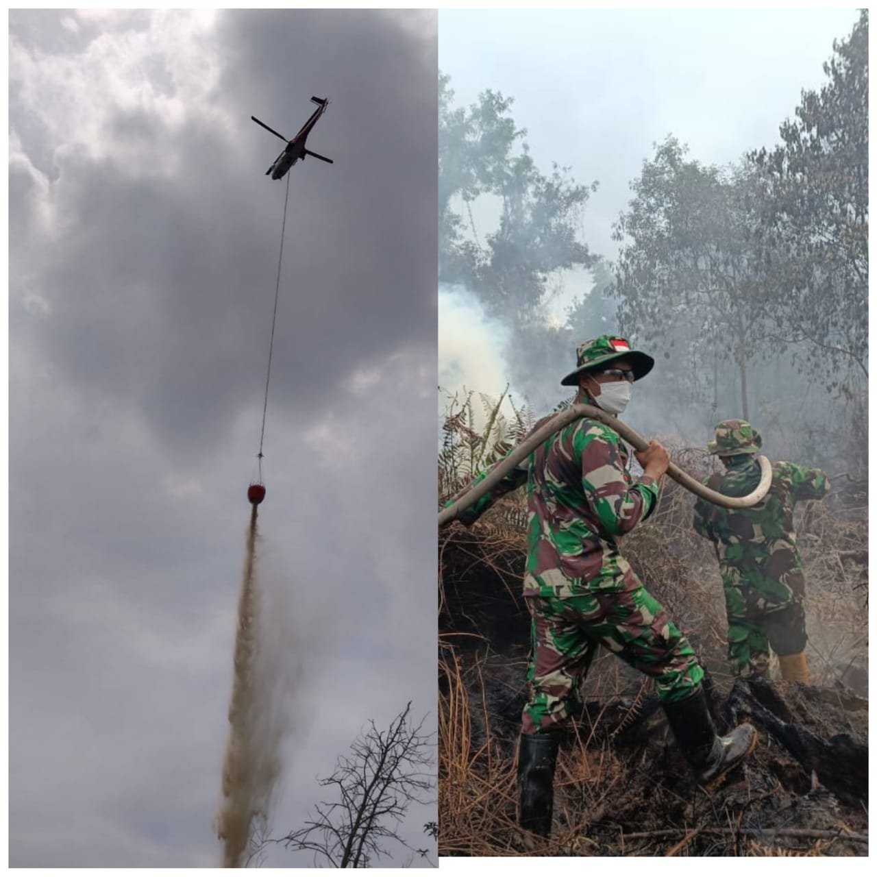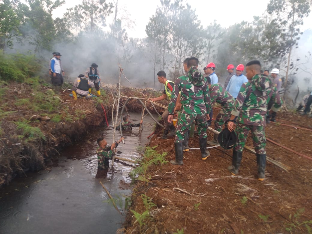 Memasuki hari kedelapan, TNI - Polri dan instansi terkait lainnya terus menerus berupaya memadamkan api Karhutla yang membakar lahan gambut berisikan semak belukar di Jalan Parit Purba Kelurahan Pelintung Kecamatan Medang Kampai Kota.