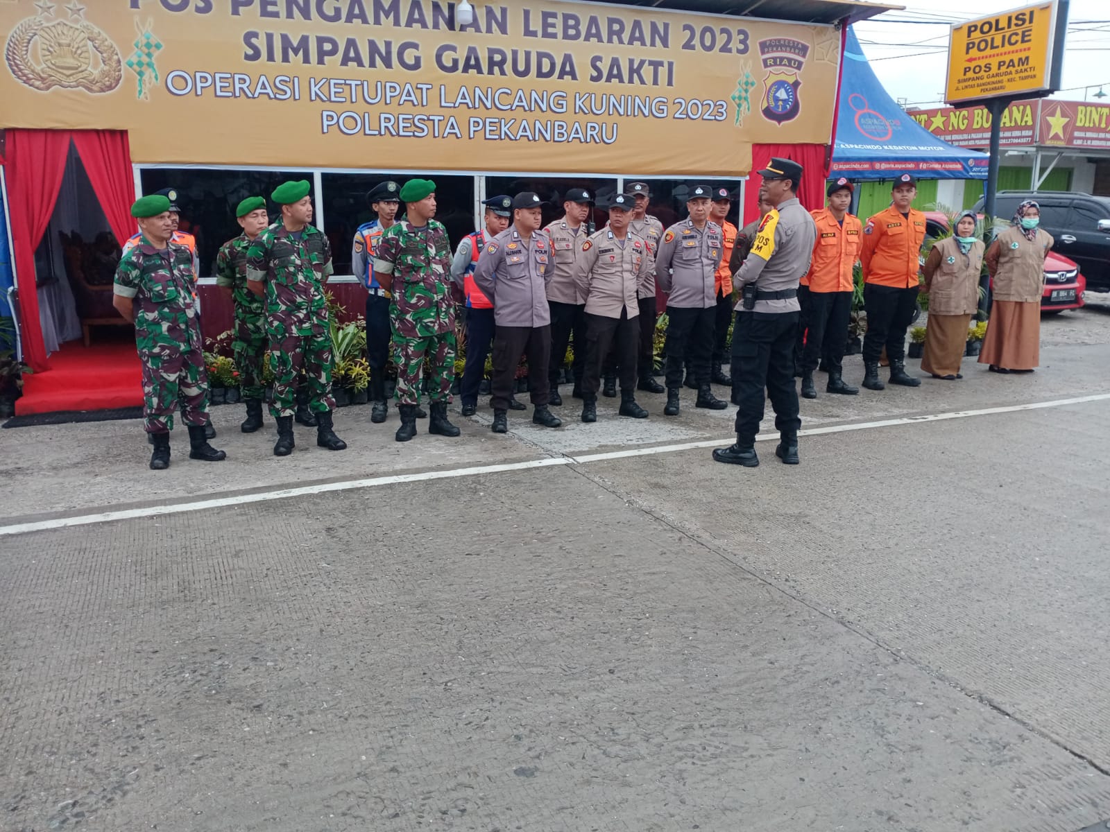 Serka J Tanjung, Anggota Koramil 06/Sukajadi melaksanakan pengecekan Pos Pengamanan Operasi Ketupat Lancang Kuning 2023, di Pos Garuda Sakti Jalan HR Soebrantas Kelurahan Tuah Madani Kecamatan Tuah Madani, Selasa.