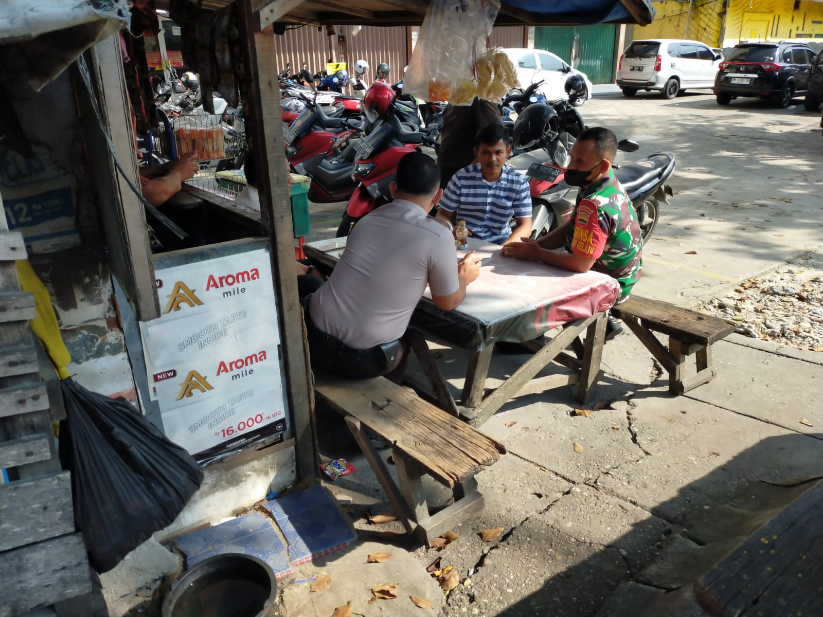 Babinsa Kelurahan Sialang Munggu Koramil 06/Sukajadi Kodim 0301/Pbr, Sertu Arman melaksanakan komunikasi sosial bersama tokoh masyarakat bapak Abdul Aziz dan warga binaan disalah satu kedai kopi di Jalan Cipta Karya, Rabu.