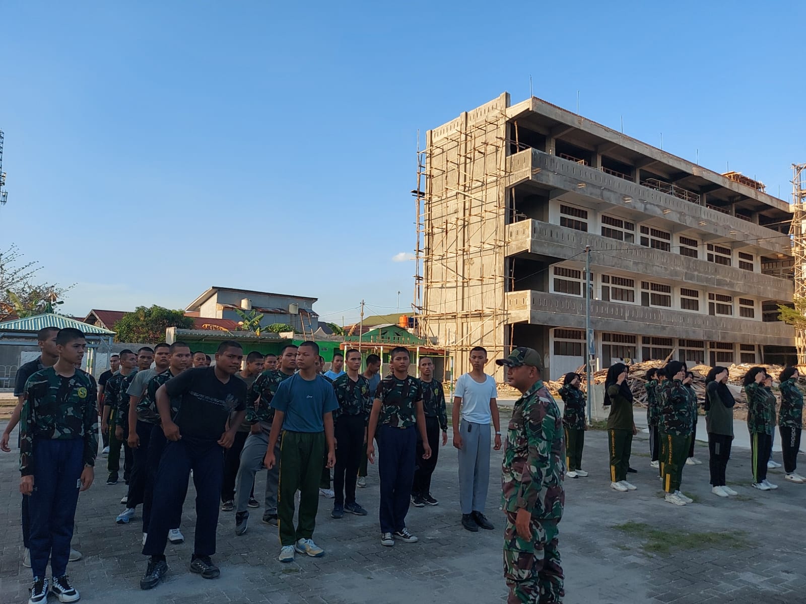 Babinsa Serka Wiyono Latih Baris-Berbaris Siswa SMK Taruna Satria.