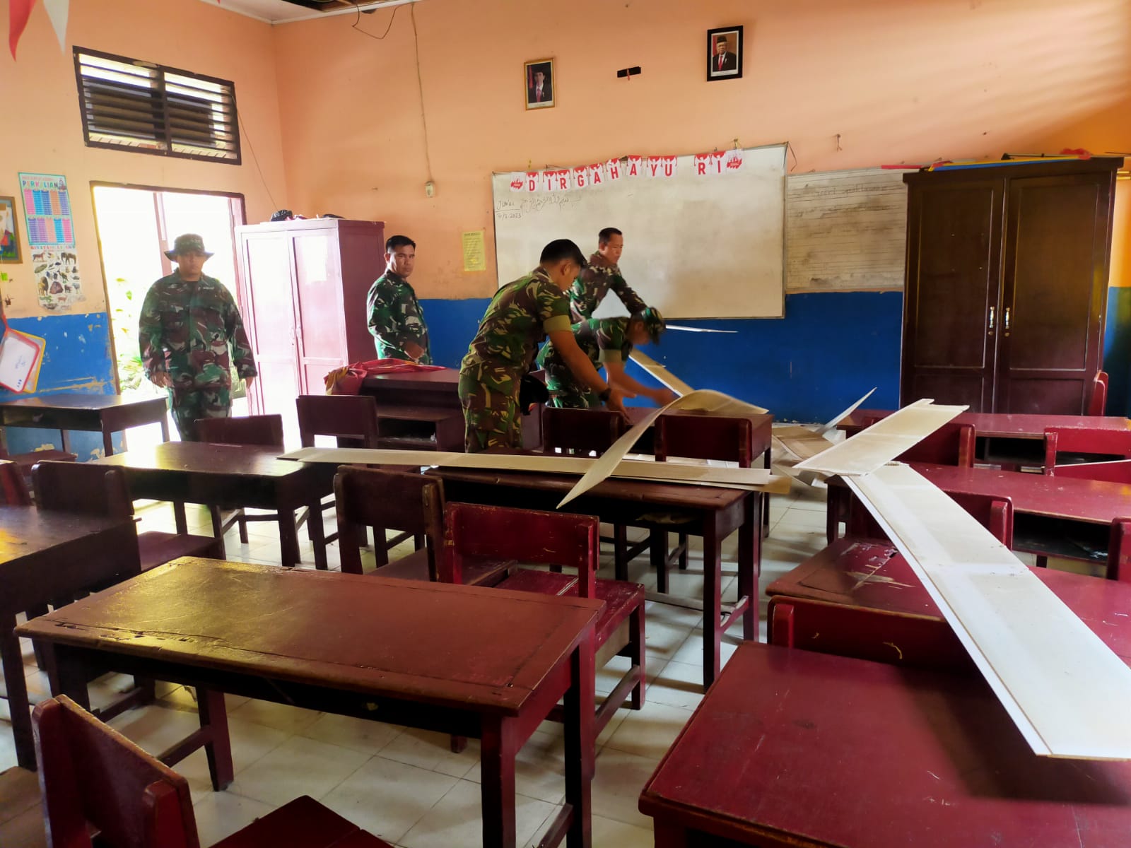 Kembali ke sekolah, belajar tatap muka dan membangun interaksi bersama guru dan teman-teman sebaya adalah momen yang paling ditunggu-tunggu setelah bangunan sekolah telah diperbaiki dan dibersihkan oleh Personel Kodim 0320/Dumai pasca ledakan.