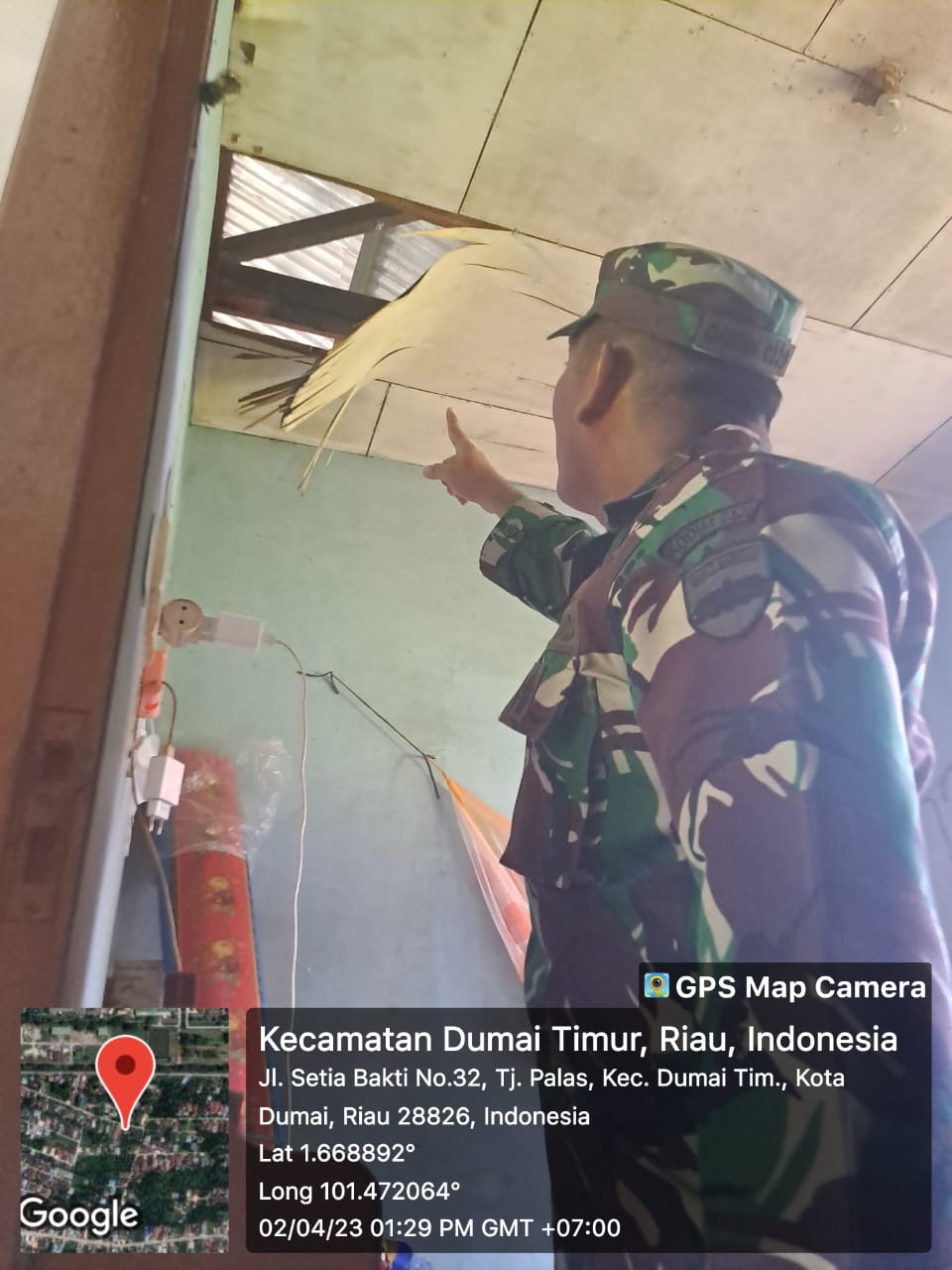 Usai memberikan bantuan sembako kepada masyarakat, korban terdampak ledakan kompresor Pertamina, Komandan Kodim 0320/Dumai, Letkol Arh Hermansyah Tarigan, S.E melanjutkan perjalanan meninjau SDN 21 yang rusak ikut dampak ledakan tersebut, Minggu.