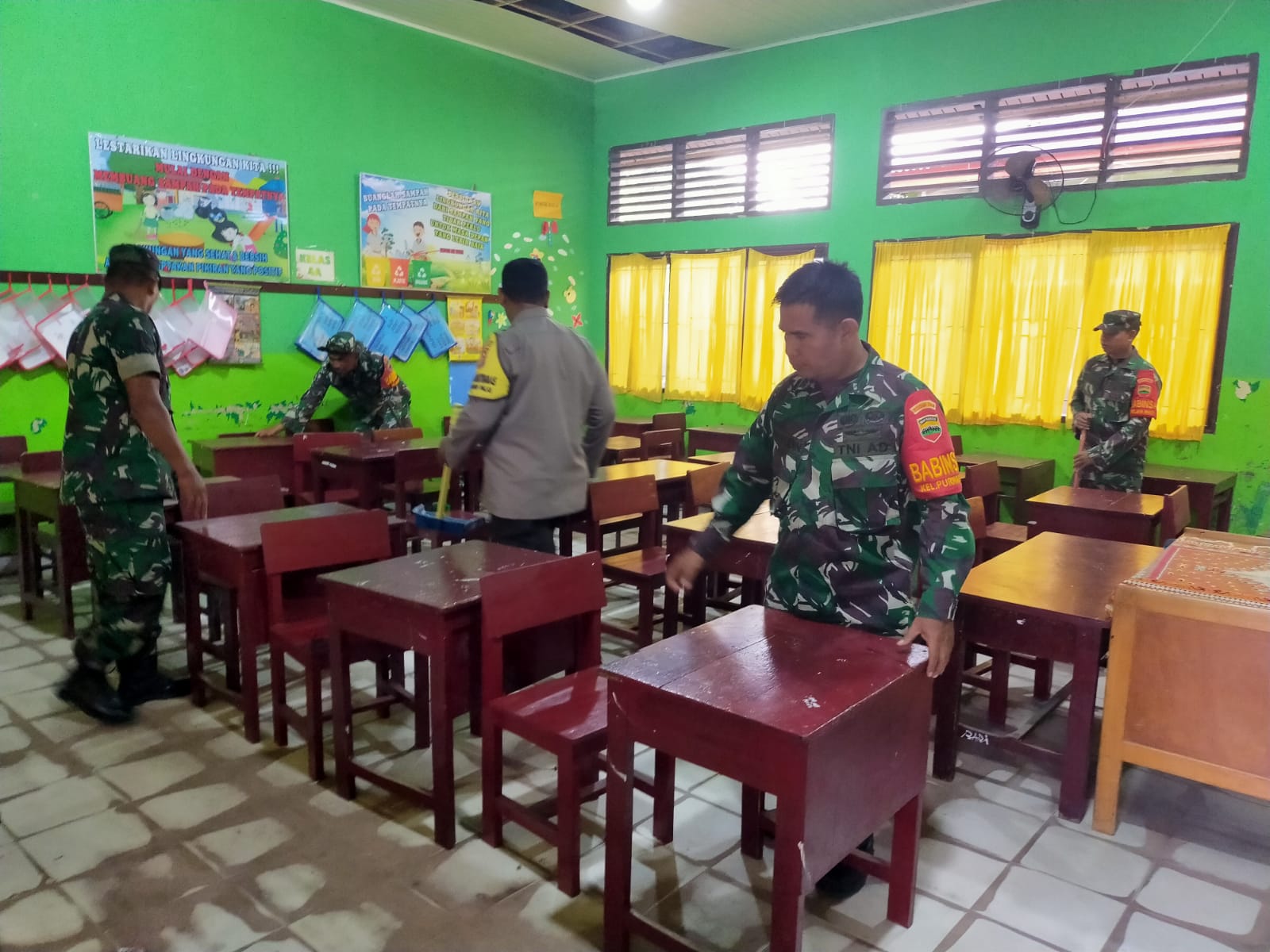 Babinsa Kodim 0320/Dumai Bersama Babhinkamtibmas Bersihkan Sekolah Pasca.