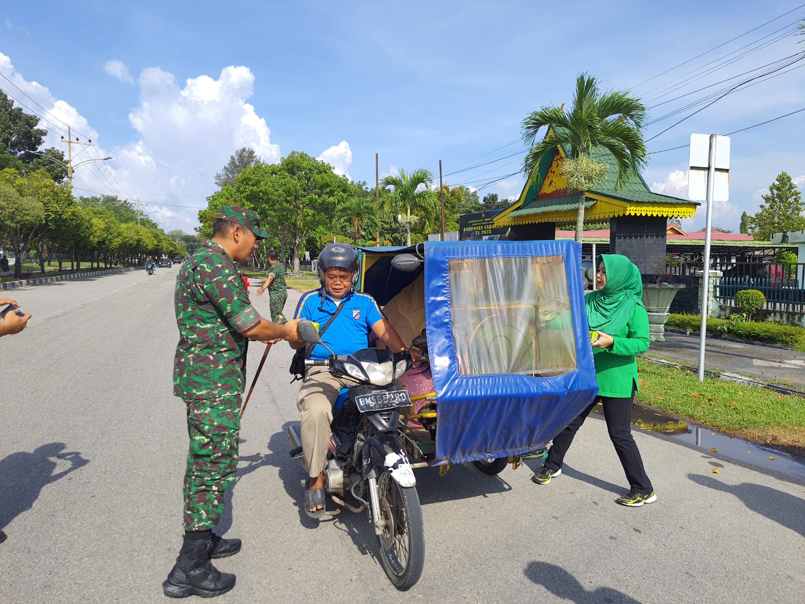 Menjelang berbuka puasa, Kodim 0320/Dumai membagikan takjil kepada pengguna jalan yang melintasi di depan Makodim Jalan Sultan Syarif Kasim Kelurahan Teluk Binjai Kecamatan Dumai Timur, Jumat sore.