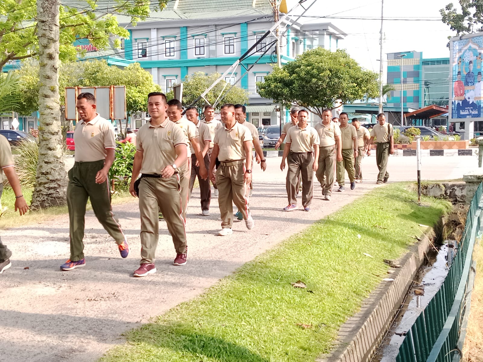 Menjalankan ibadah puasa, tidak menyurutkan semangat Komandan Kodim 0320/Dumai Letkol Arh Hermansyah Tarigan, SE bersama Prajurit dan PNS dalam melaksanakan senam SKJ dan jalan sehat.