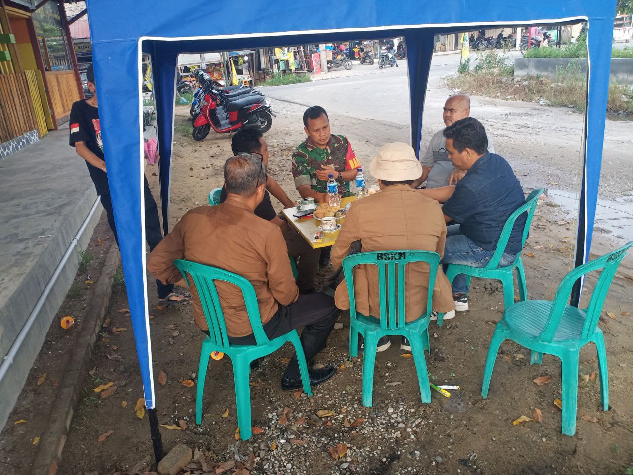 Sertu Parjo, Babinsa kelurahan Sungai Sibam melaksanakan giat komsos di kedai kopi jalan Beringin kecamatan Binawidya, Sabtu.