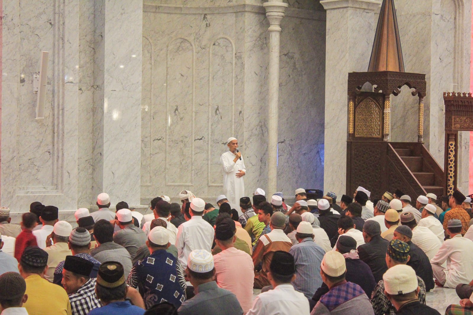 Sempena Ramadhan 1444 H, Komandan Kodim (Dandim) 0320/Dumai Letkol Hermansyah Tarigan, SE bersama Walikota Dumai H Paisal dan Forum Komunikasi Pimpinan Daerah (Forkopimda) dan ribuan muslim lainnya menunaikan Shalat Tarawih berjamaah perdana di.