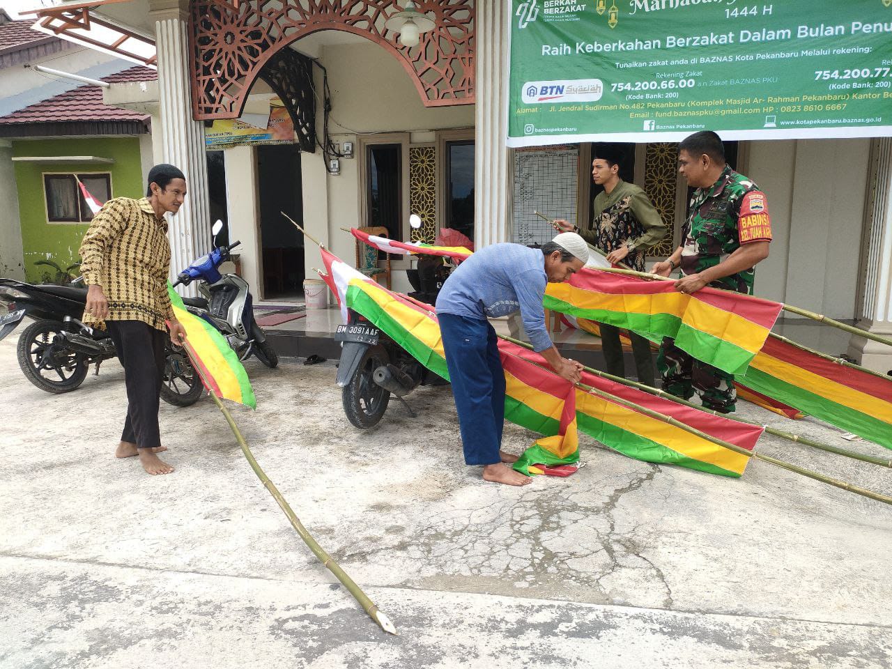 Menyambut bulan suci Ramadhan 1444 H, yang tinggal hitungan jam, Babinsa Koramil 06/Sukajadi Kodim 0301/PBR, Serka Nasaruddin bersama warga Jalan Budidaya RT 01 RW 18 melaksanakan gotong royong membersihkan Masjid Nurul Jannah dan halaman.
