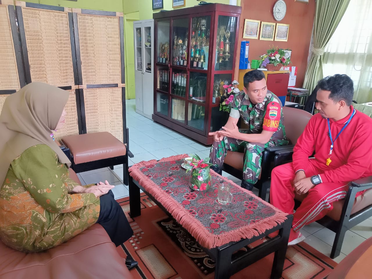 Babinsa Koramil 06/Sukajadi Kodim 0301/Pekanbaru, Serda Yasir Anhar melaksanakan komunikasi sosial di SDN 89 di Jalan Bunga Kertas Kelurahan Harjosari Kecamatan Sukajadi, Senin.