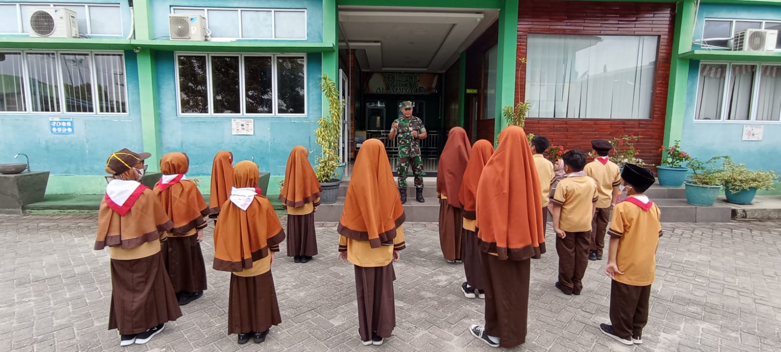 Bintara Pembina Desa (Babinsa) Koramil 06/Sukajadi Kodim 0301/PBR, Sertu Parjo memberikan sosialisasi edukasi anti perundungan (bullying) dan kekerasan kepada siswa/i SDIT Al Andalus Jalan Karyawan RT 01 RW 08 Kelurahan Sidomulyo Barat Kecamatan.