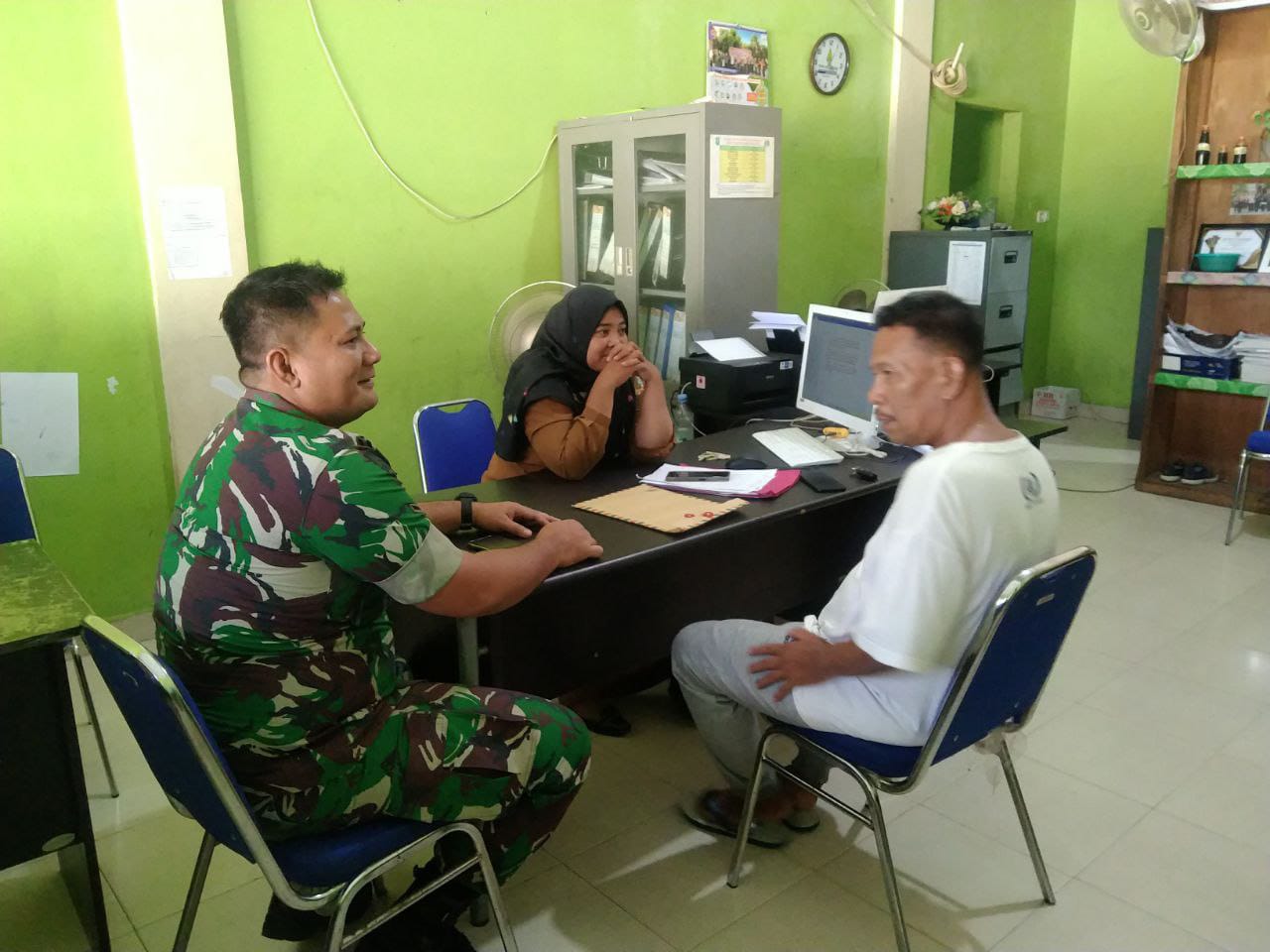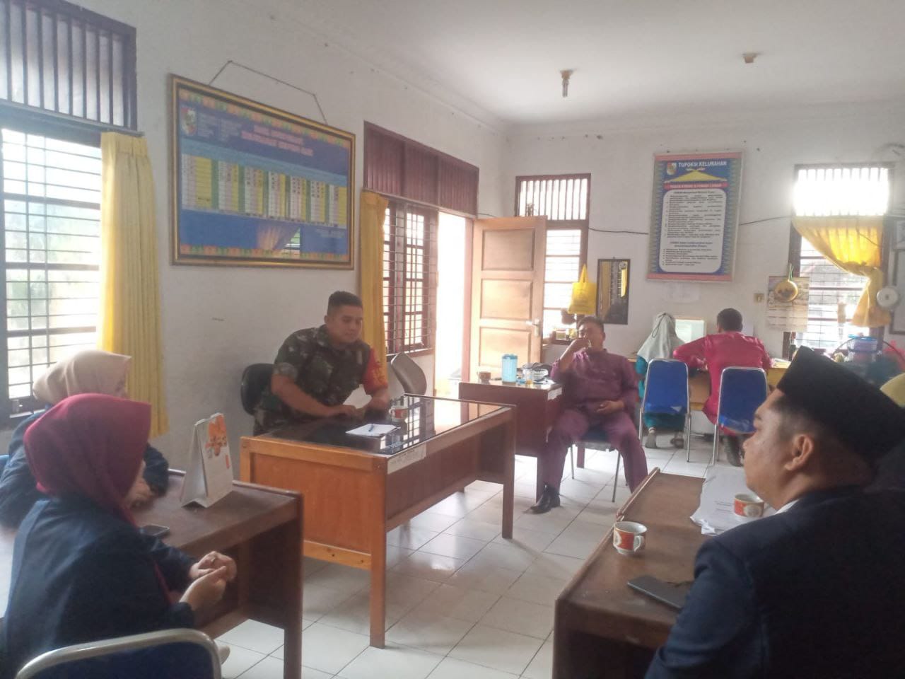 Babinsa Koramil/06 Sukajadi Kodim 0301/PBR, Serda J H Pasaribu melaksanakan Komsos bersama Kasipem Kelurahan di Kantor lurah Tuah Madani Jalan Saudara Kecamatan Tuah Madani Pekanbaru, Jumat.