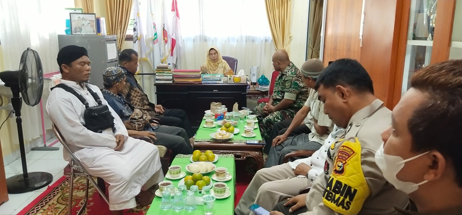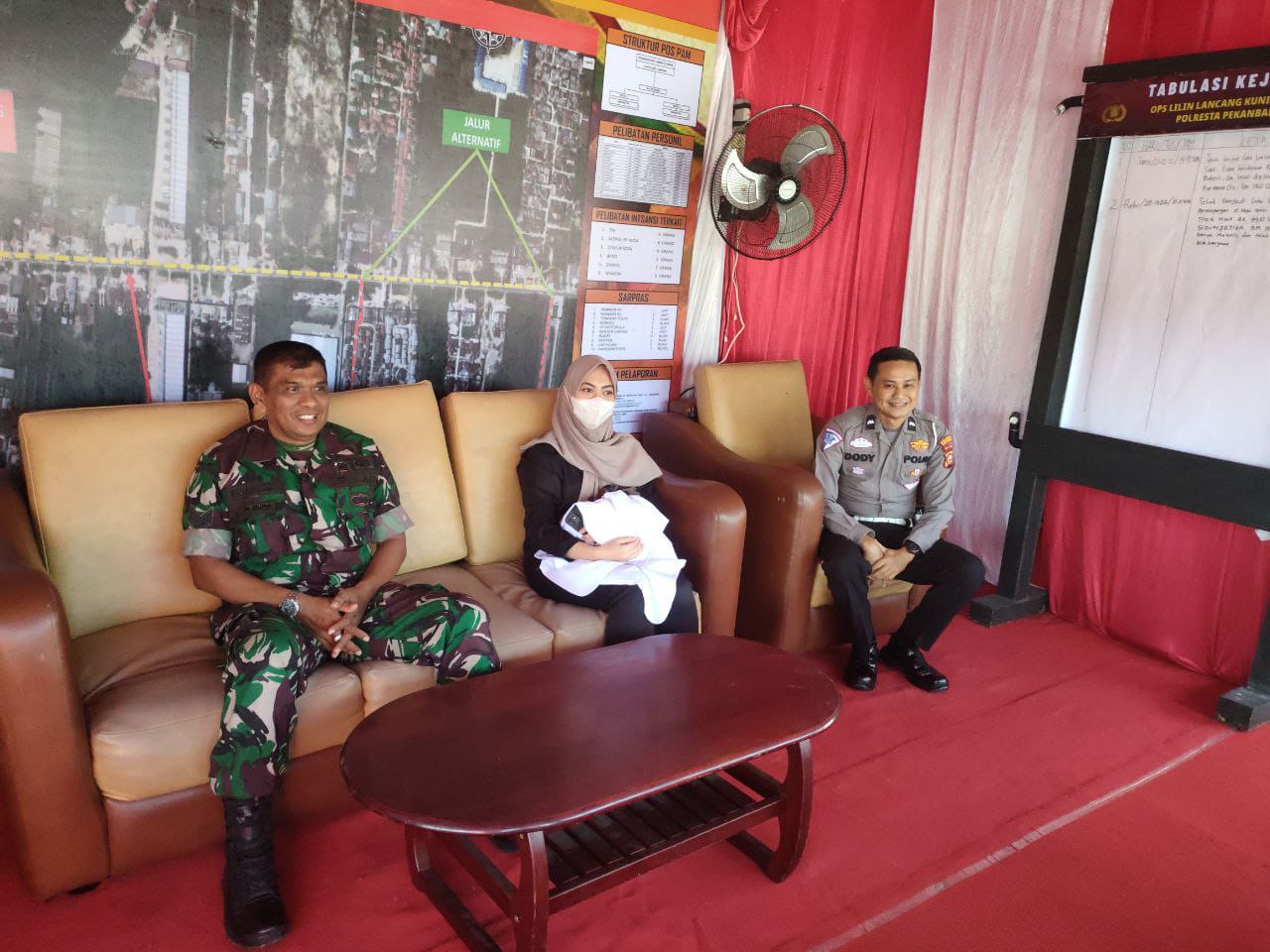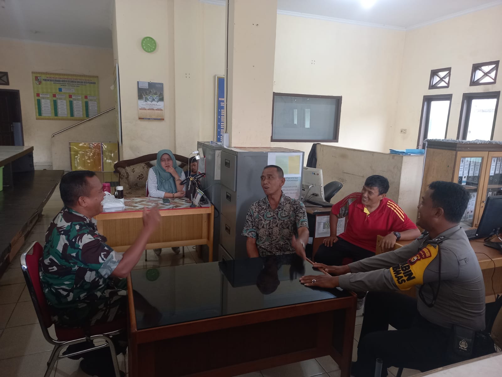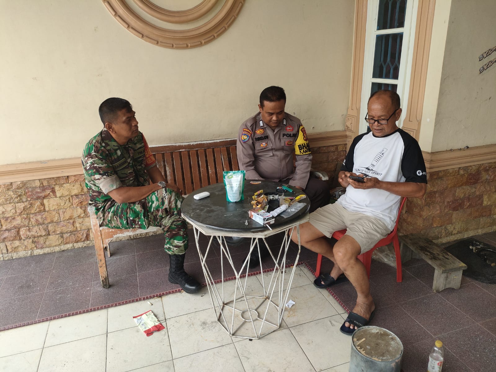 Anggota Koramil 06/Sukajadi, Serma Budi Mulia dan Babhinkamtibmas Aipda Sigit Kurniawan melaksanakan komunikasi sosial bersama Seklur Ospendi dan mantan Ketua RT 03 Ali Umar di kantor Kelurahan Jadirejo Jalan Kesuma Kecamatan Sukajadi, Senin.