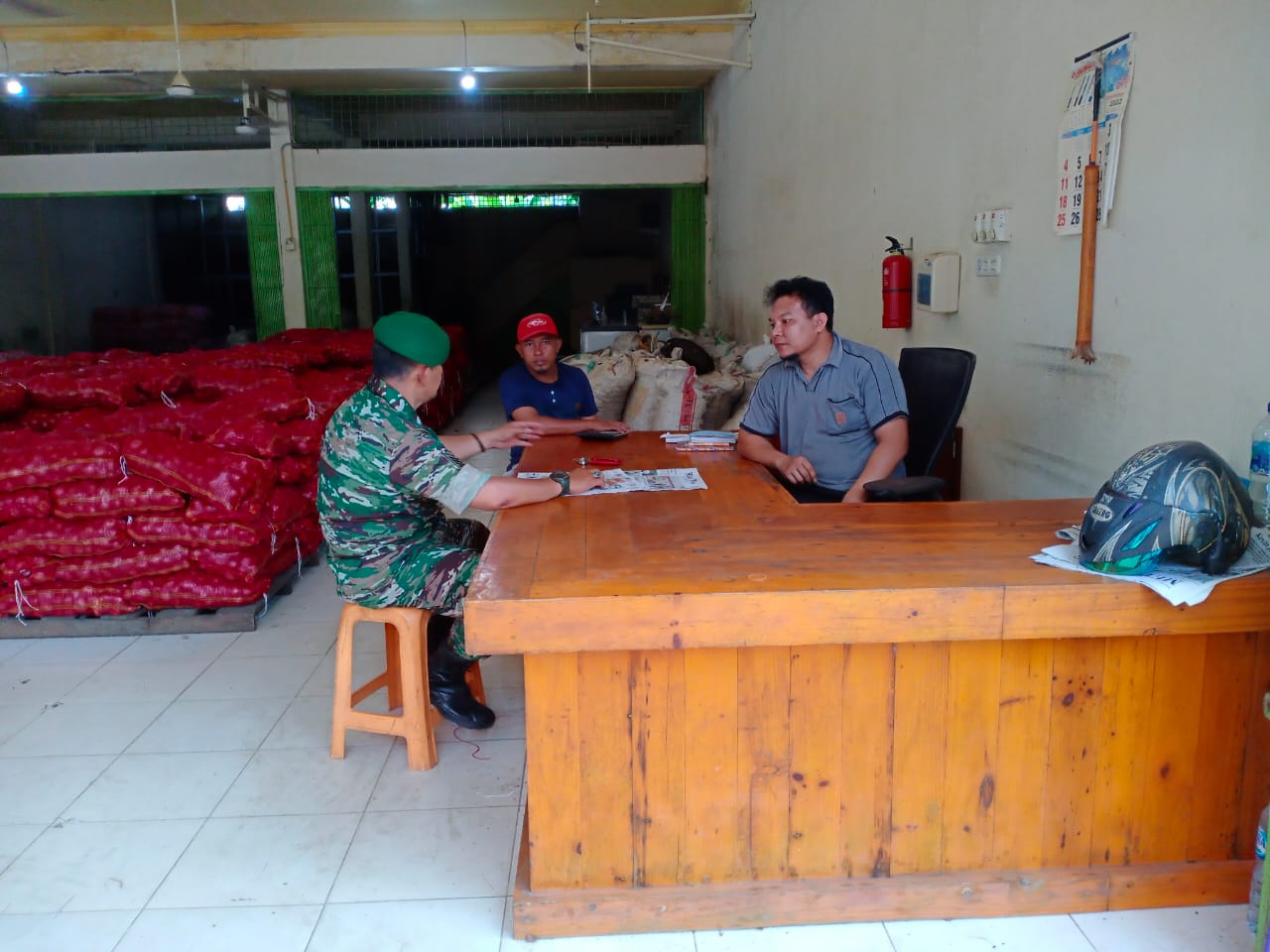 Babinsa Koramil 06/Sukajadi Kodim 0301/PBR, Serma Misbahuddin melaksanakan komsos dengan pedagang bawang H.Tarmizi Jalan Soekarno Hatta RT 01 RW 03 Kelurahan Tobek Godang Kecamatan Binawidya Kota Pekanbaru, Minggu.