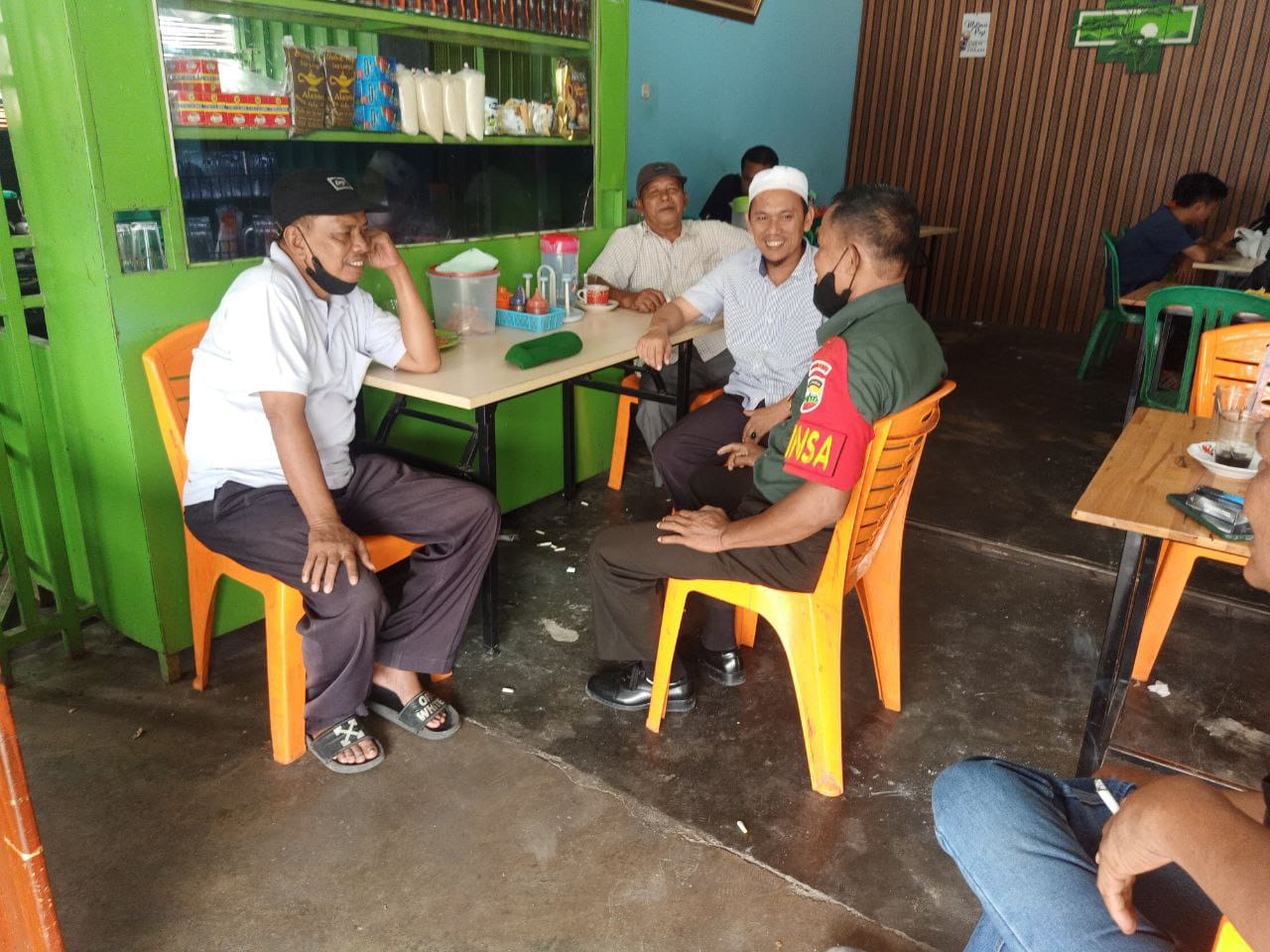 Bintara Pembina Desa (Babinsa) Koramil 06/Sukajadi Kodim 0301/PBR, Serka Tanjung melaksanakan komunikasi sosial di salah satu kedai kopi Jalan Melur Ujung RT 04 RW 07 Kelurahan Sidomulyo Barat Kecamatan Tuah Madani, Sabtu.