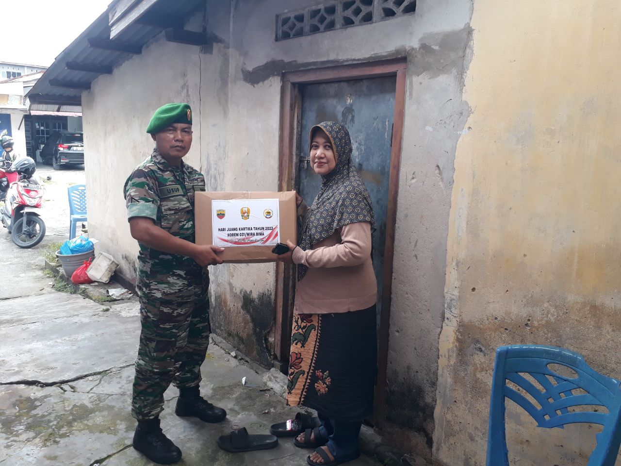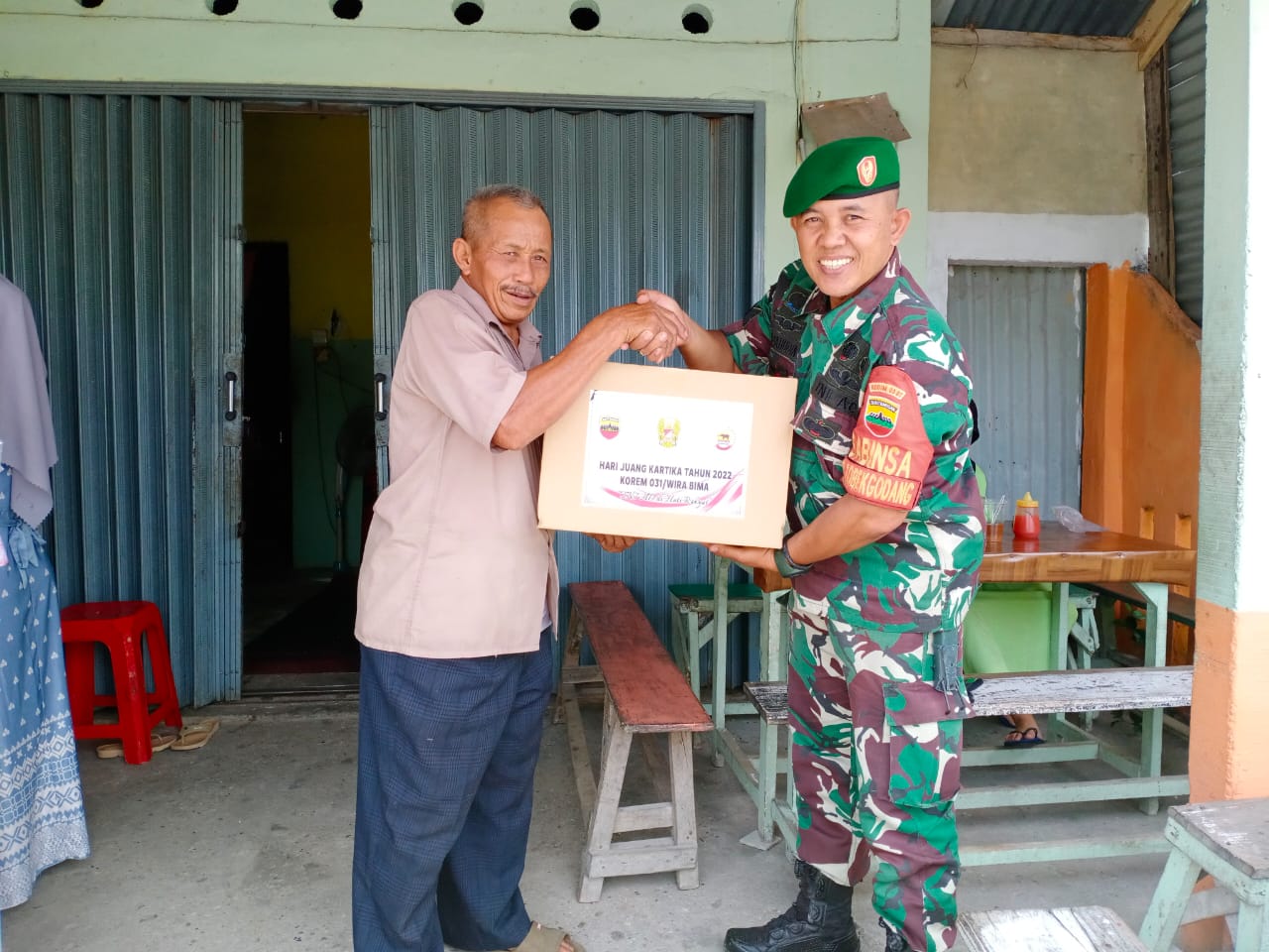 Dalam rangka memperingati Hari Juang TNI-AD Ke 77 Tahun 2022, Babinsa Koramil 06/Sukajadi Kodim 0301/PBR, Sertu Usup menyalurkan puluhan paket bantuan sembako dari Danrem 031/WB Brigjen TNI Parlindungan Hutagalung, S.A.O., kepada warga kurang mampu.