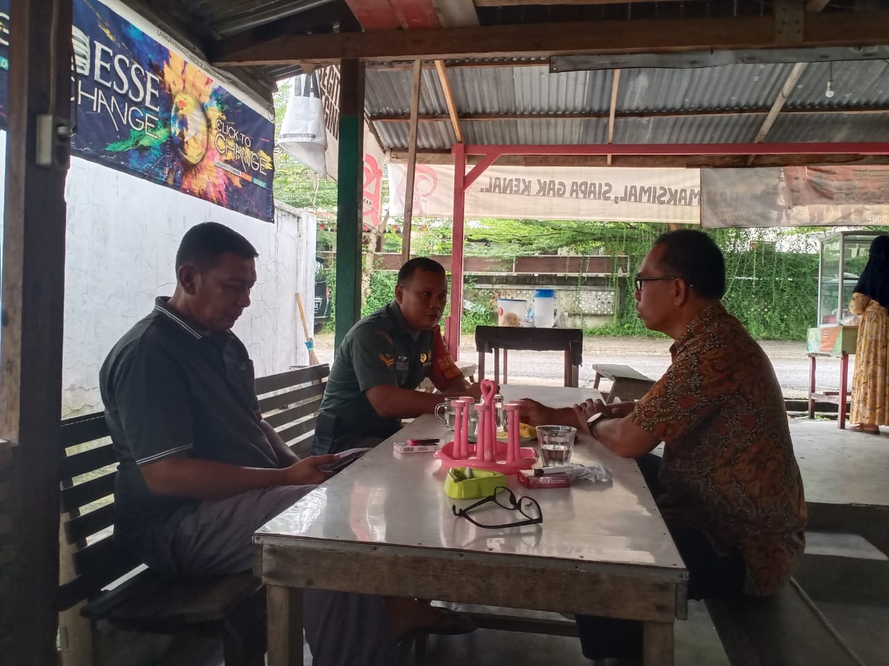 Komunikasi dengan masyarakat tidak mengenal tempat, dimana masyarakat berbuat di situ Babinsa selalu berusaha untuk hadir. Kegiatan Komsos ini sebagai wujud kedekatan TNI dengan.