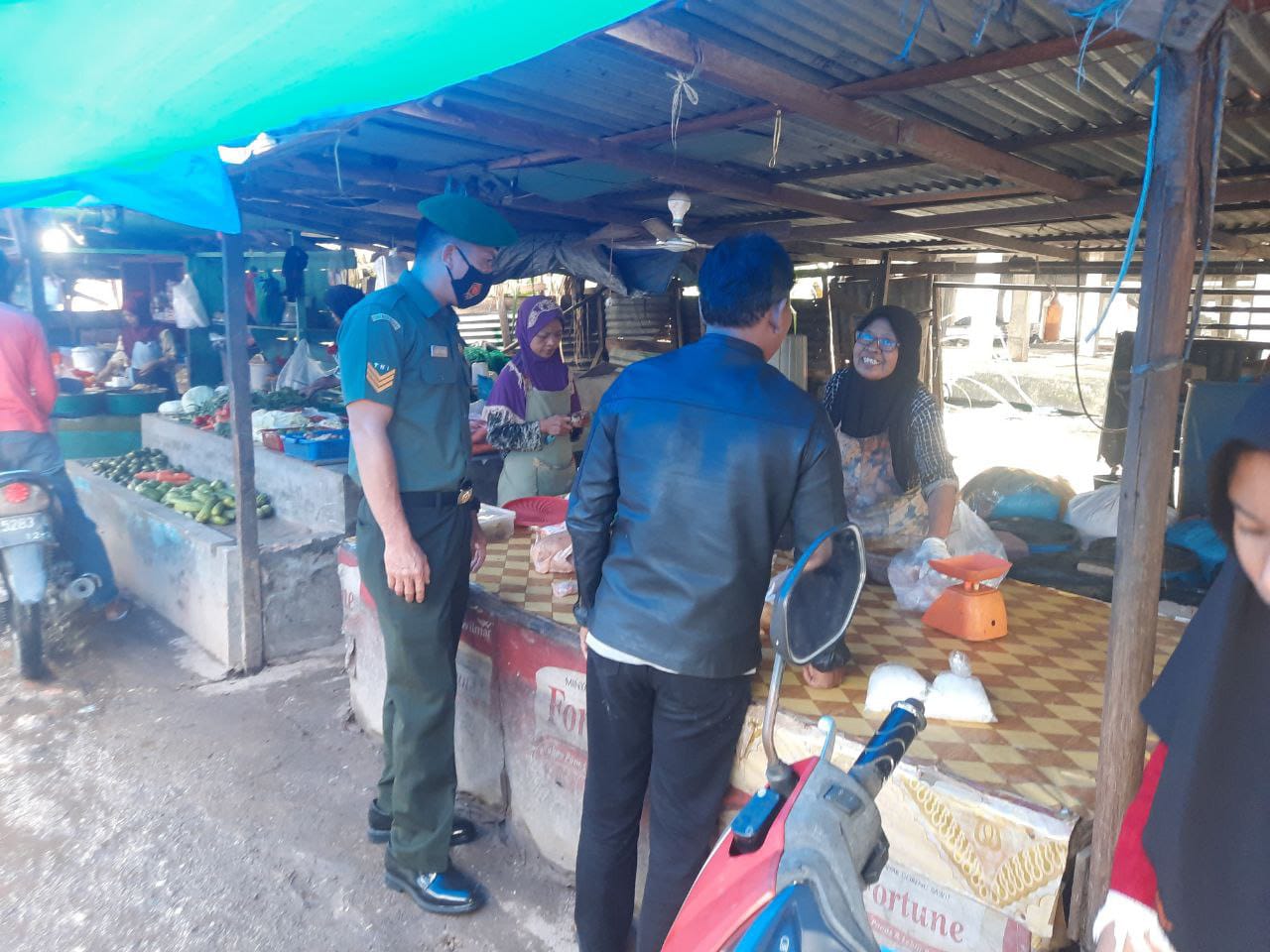 Bertempat di Pasar tradisional Cik Puan yang berada ditengah jantung Kota Pekanbaru, Jalan Kesuma Kelurahan Jadirejo Kecamatan Sukajadi, Babinsa Serka Toni Efendi dengan humanis, senyum dan menyapa para pedagang tahu dan sayuran serta pembeli di.