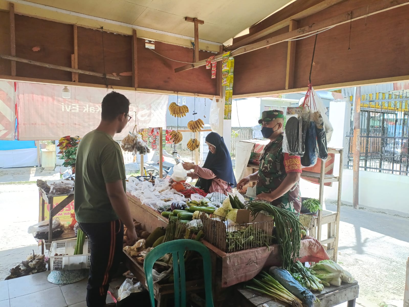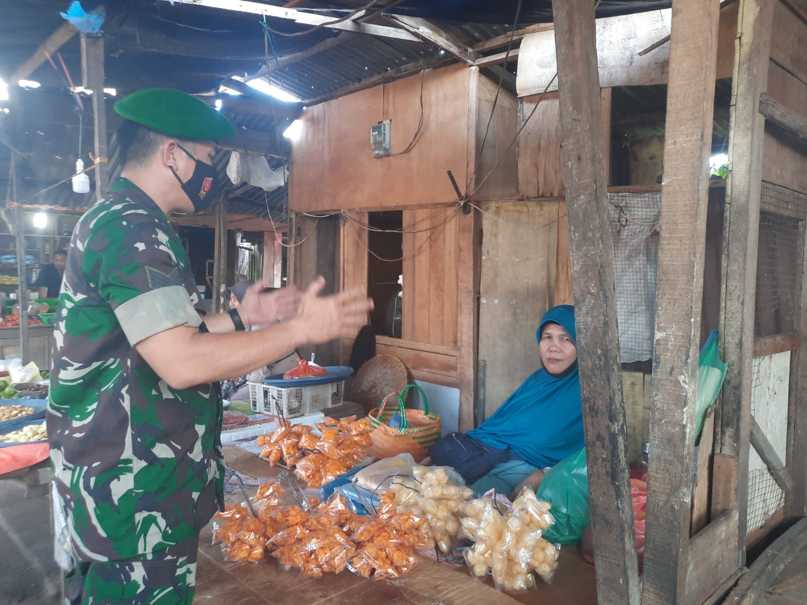 Memiliki sikap ramah tamah dan penyampaian secara humanis merupakan ciri khas, Babinsa Koramil 06/Sukajadi Kodim 0301/PBR, Serka Toni Efendi laksanakan komunikasi sosial dengan pedagang di Pasar Cik Puan Jalan Kesuma Kelurahan Jadirejo Kecamatan.