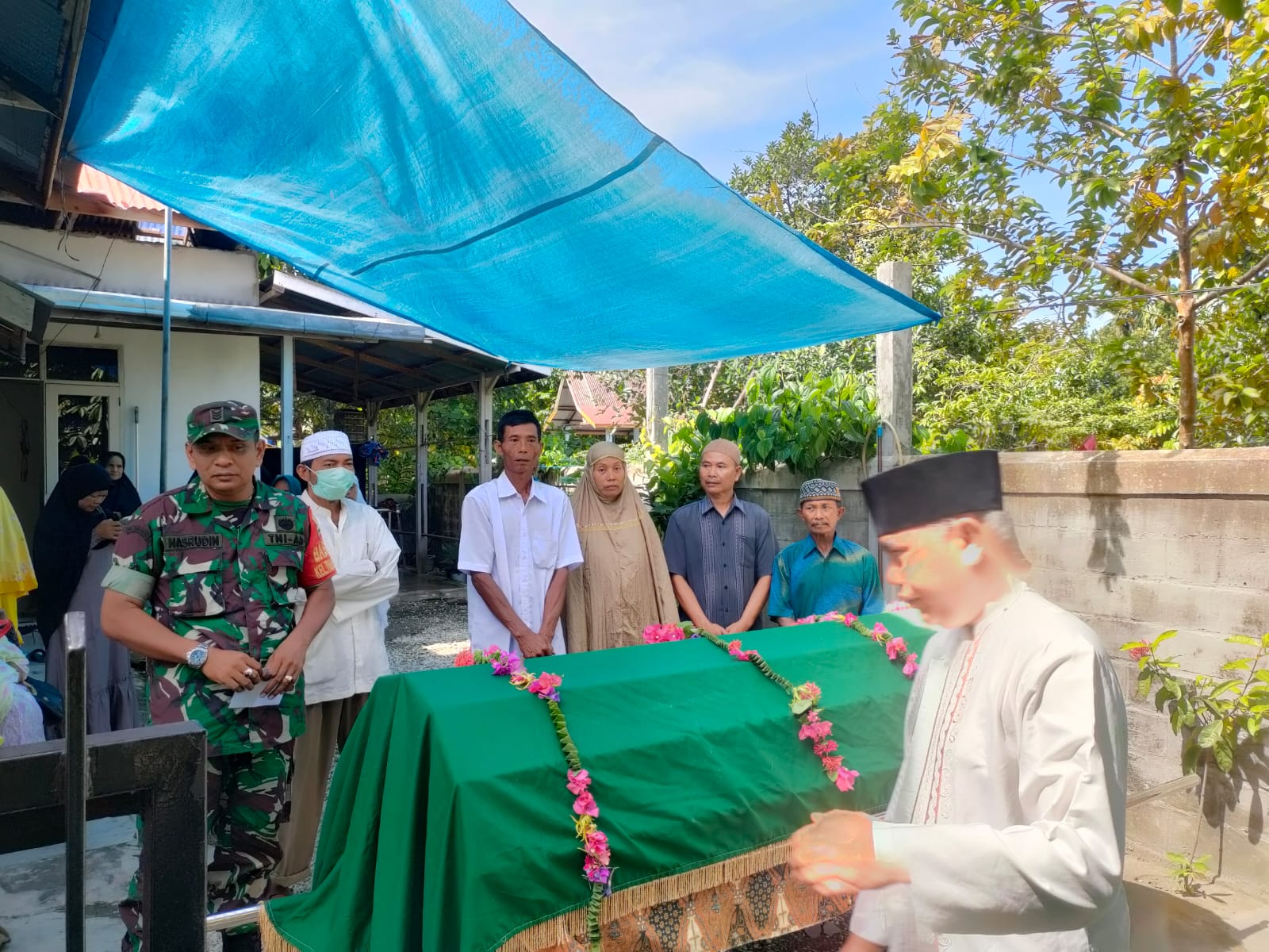 Sebagai bentuk kepedulian serta ungkapan rasa belasungkawa, Serka Nasaruddin, Babinsa Koramil 06/Sukajadi Kodim 0301/PBR melaksanakan giat melayat di rumah duka warga binaan almarhum Kromo Wagiman (95) meninggal karena.