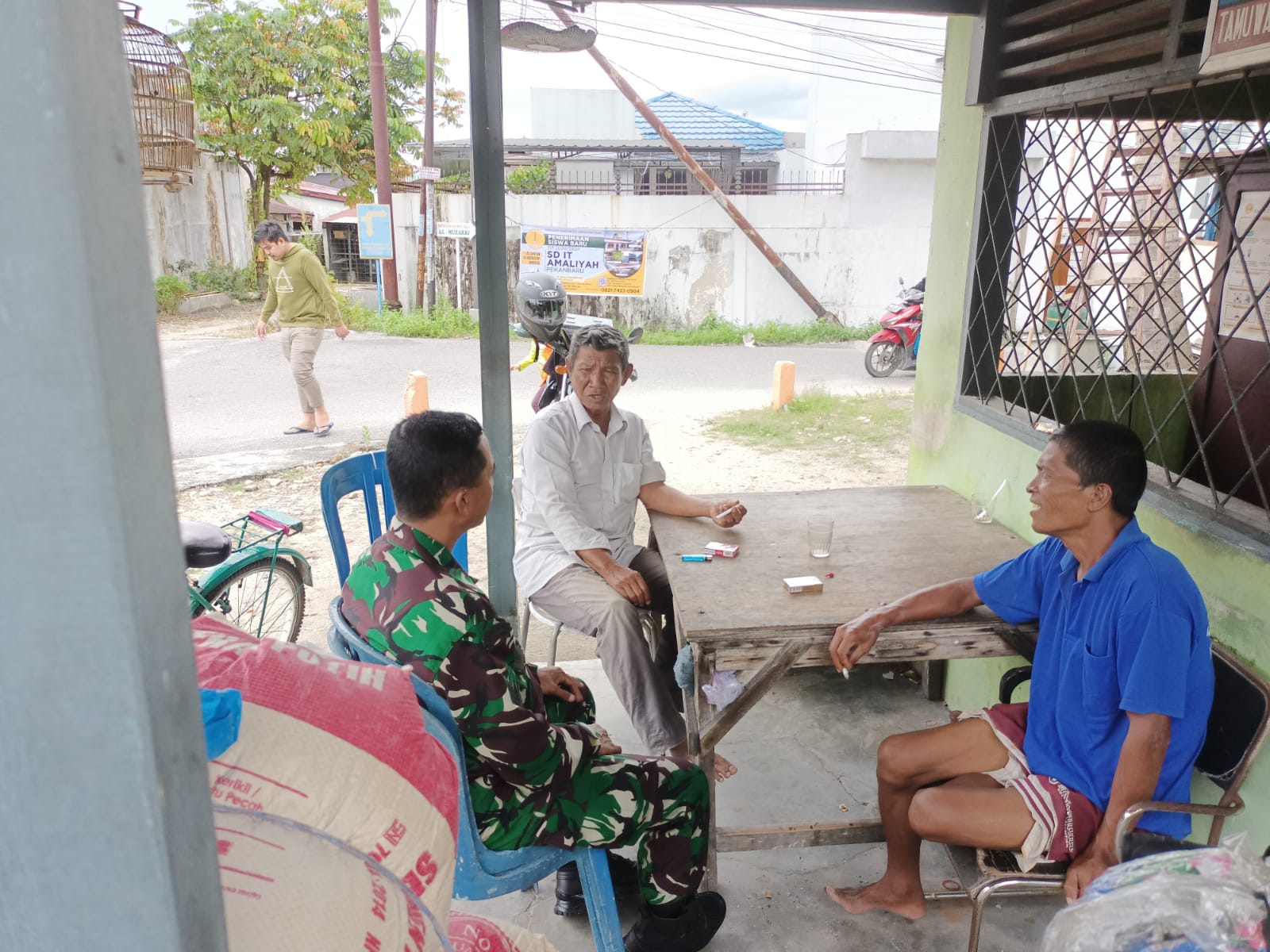 Serka Adeng, Babinsa Kel Kampung Melayu Koramil 06/Sukajadi Kodim 0301/Pekanbaru melaksanakan kegiatan Komsos bersama Sasudin, selaku Jalan Rajawali Kelurahan Kampung Melayu Kecamatan Sukajadi, Pekanbaru, Selasa.