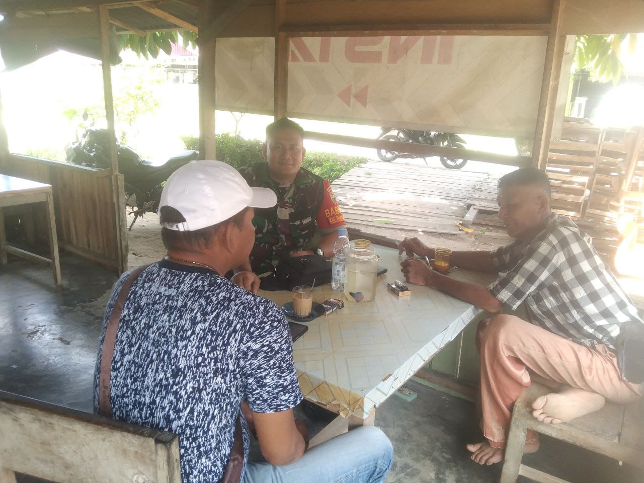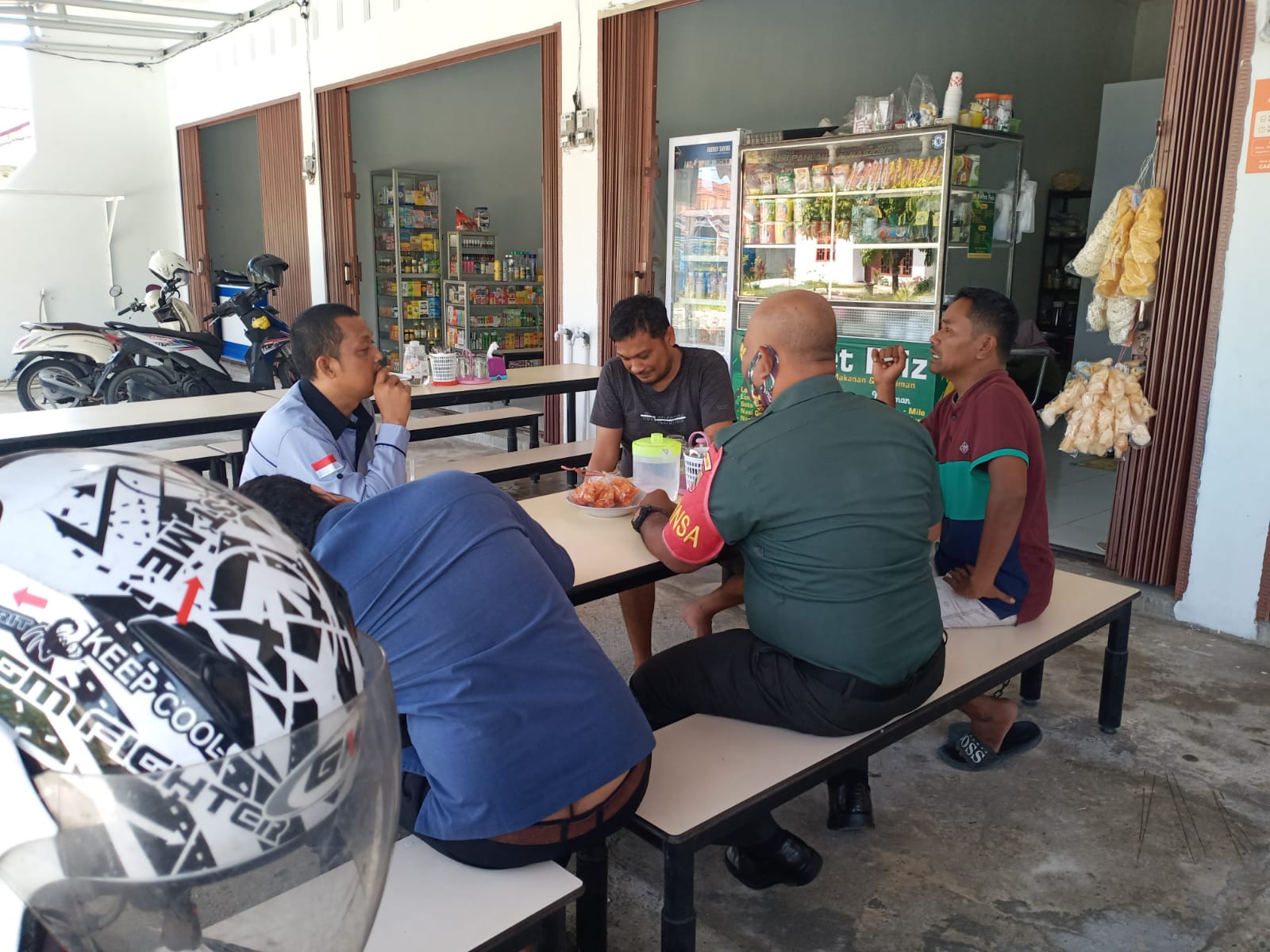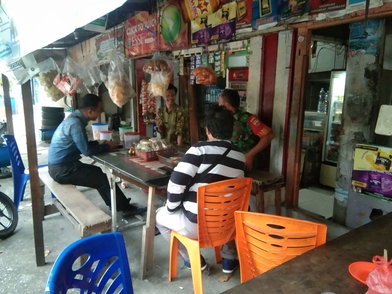 Warung pak Hadi, menikmati segelas kopi dan makanan ringan, berbincang-bincang ringan membahas kamtibmas dan peduli.