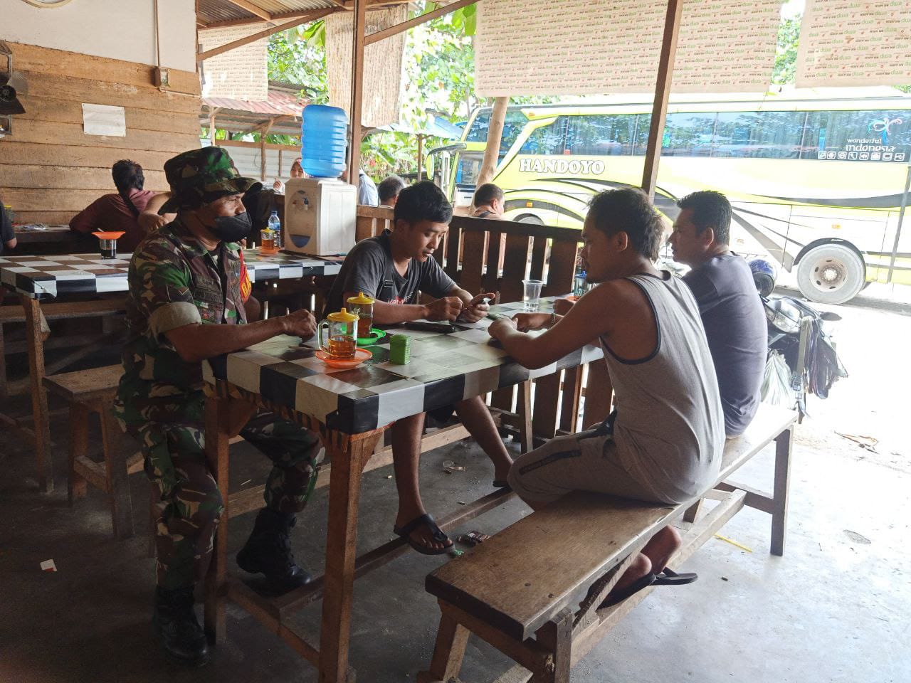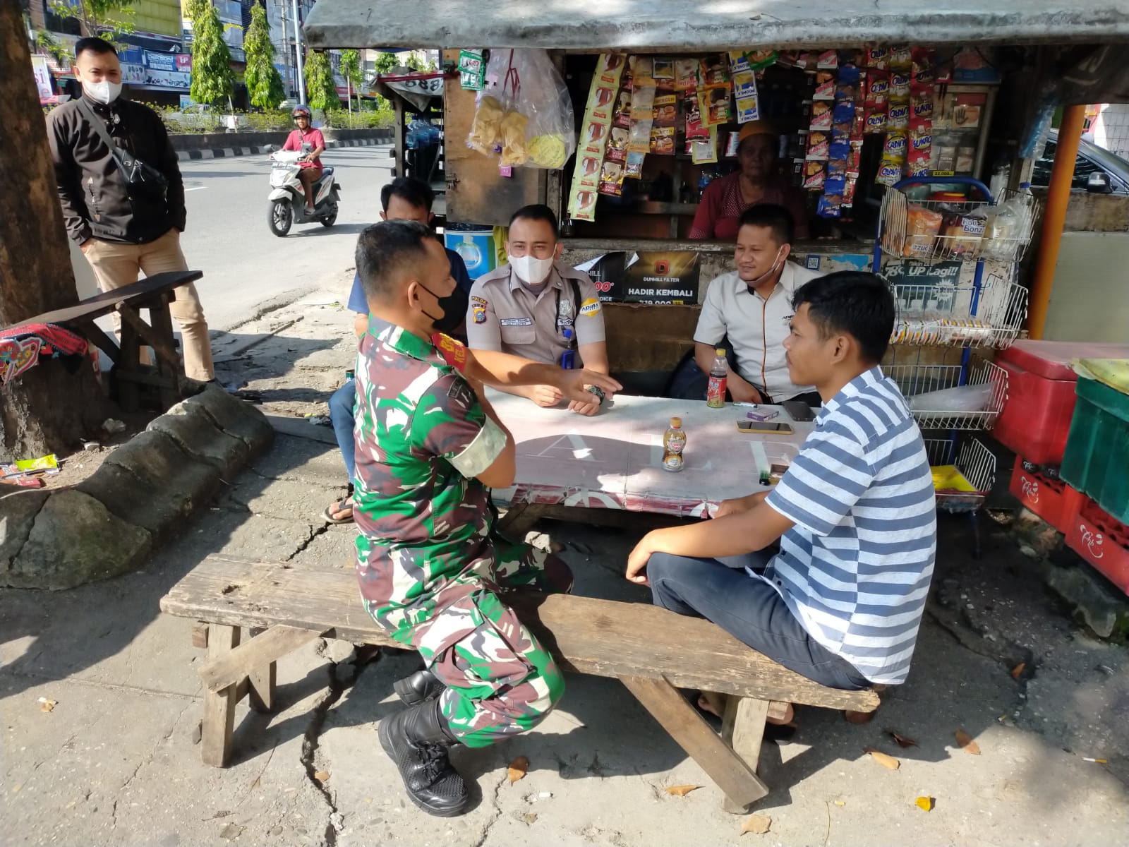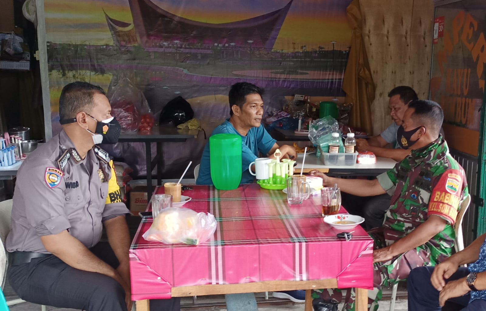 Warung pak Hadi, menikmati segelas kopi dan makanan ringan, berbincang-bincang ringan membahas kamtibmas dan peduli.
