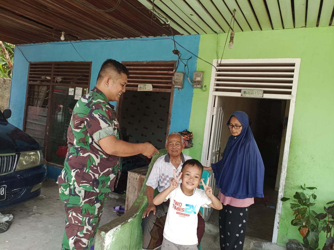 Babinsa Koramil 06/Sukajadi Kodim 0301/PBR, Serka Kusman Darmanto melaksanakan komunikasi sosial dengan bersilaturahmi dikediaman rumah warga, Royali dan Narsiah Jalan Dahlia gang Sawi Kelurahan Kedung Sari Kecamatan Sukajadi, Sabtu.