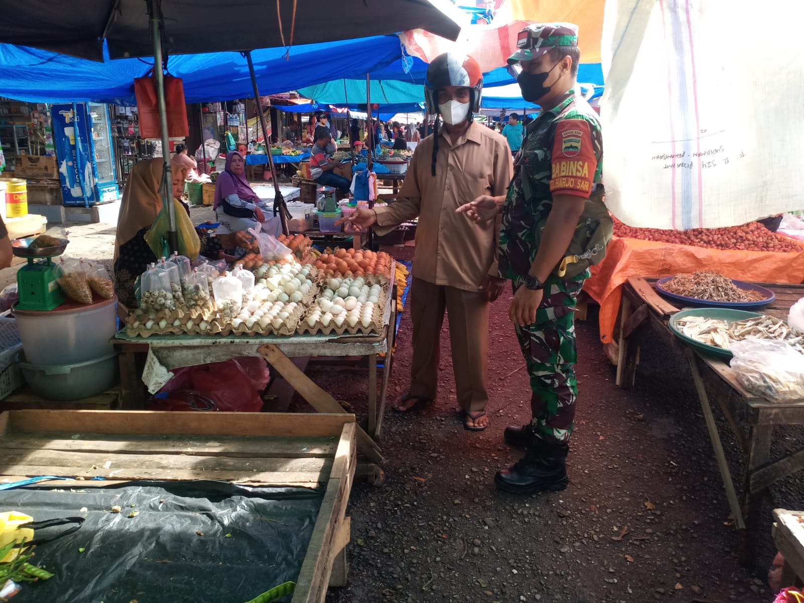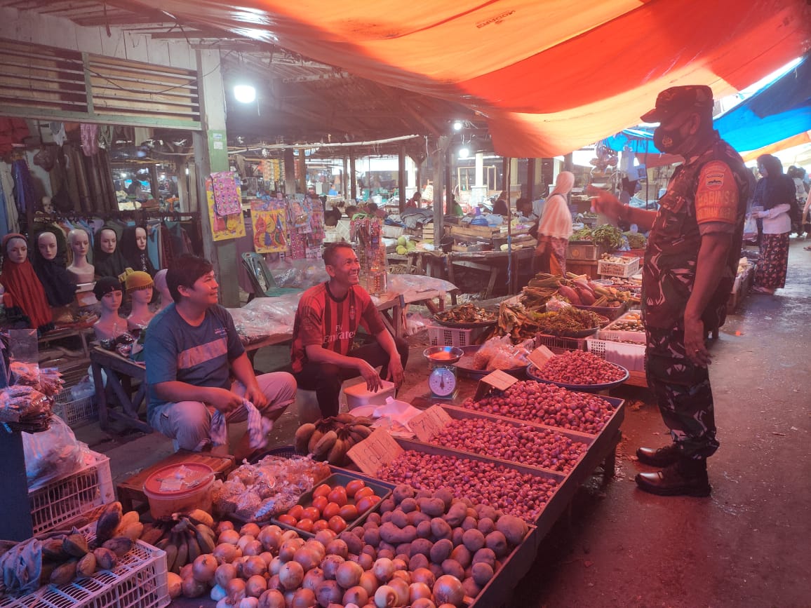 Memiliki sikap ramah tamah dan penyampaian secara humanis merupakan ciri khas, Babinsa Koramil 06/Sukajadi Kodim 0301/PBR, Sertu Parjo melaksanakan komunikasi sosial dengan pedagang dan pembeli di Pasar Cik Puan Jalan Tuanku Tambusai Kelurahan.