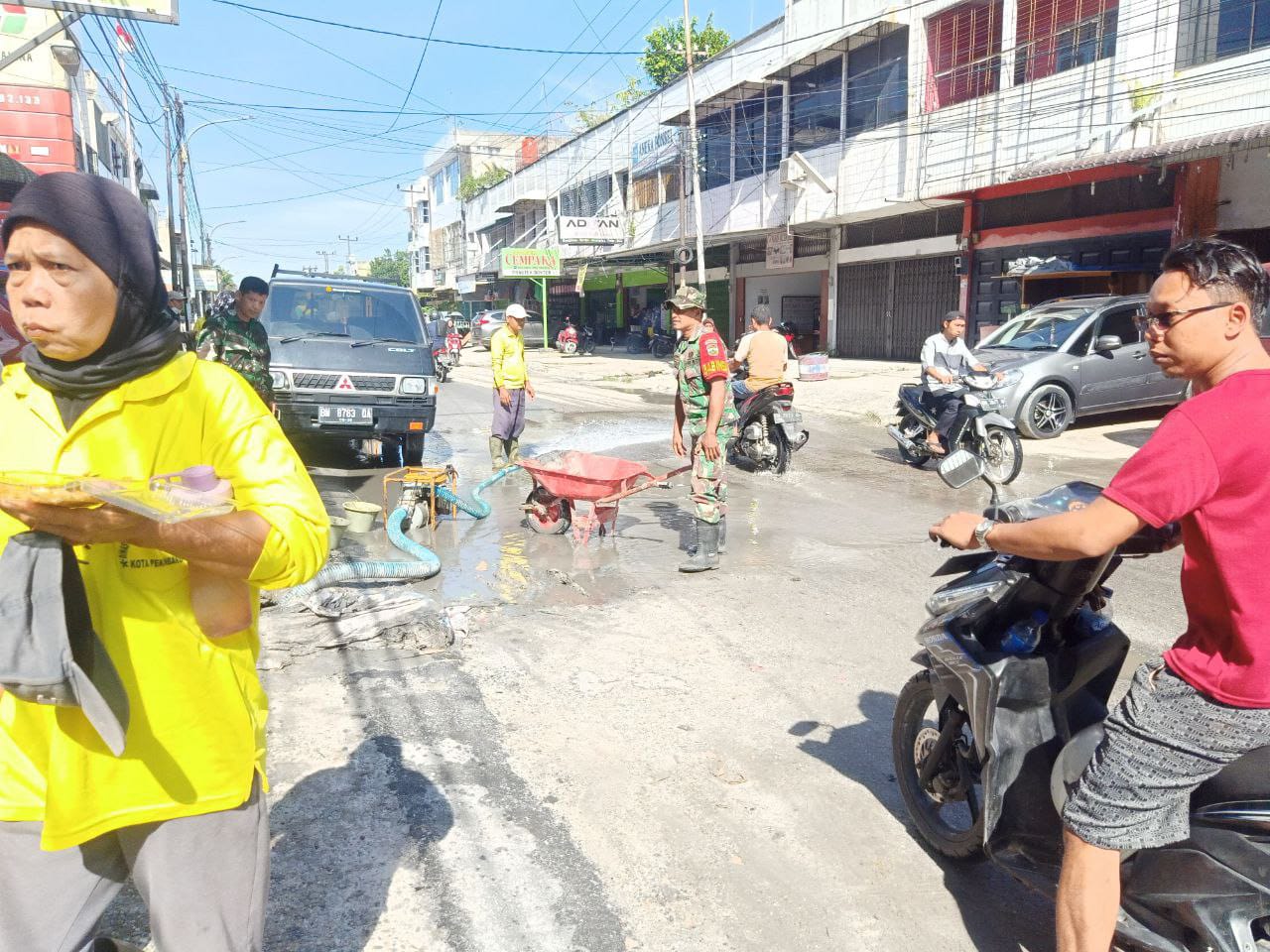 Serda J.H.Pasaribu Babinsa Koramil 06/Sukajadi Kodim 0301/Pekanbaru melaksanakan gotong royong normalisasi parit diwilayah dalam rangka mewujudkan Kota Pekanbaru bebas sampah dan banjir Tahun.