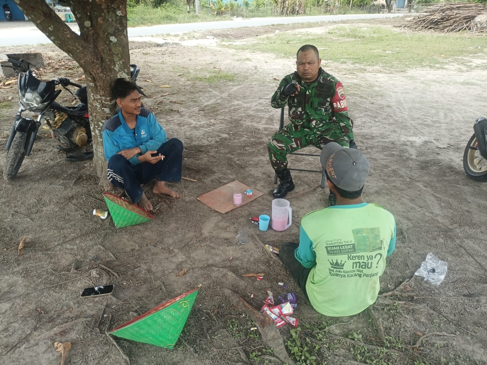 Warung Jadi Ruang Komsos, Babinsa Muara Fajar Timur Sampaikan Pesan Waspada.