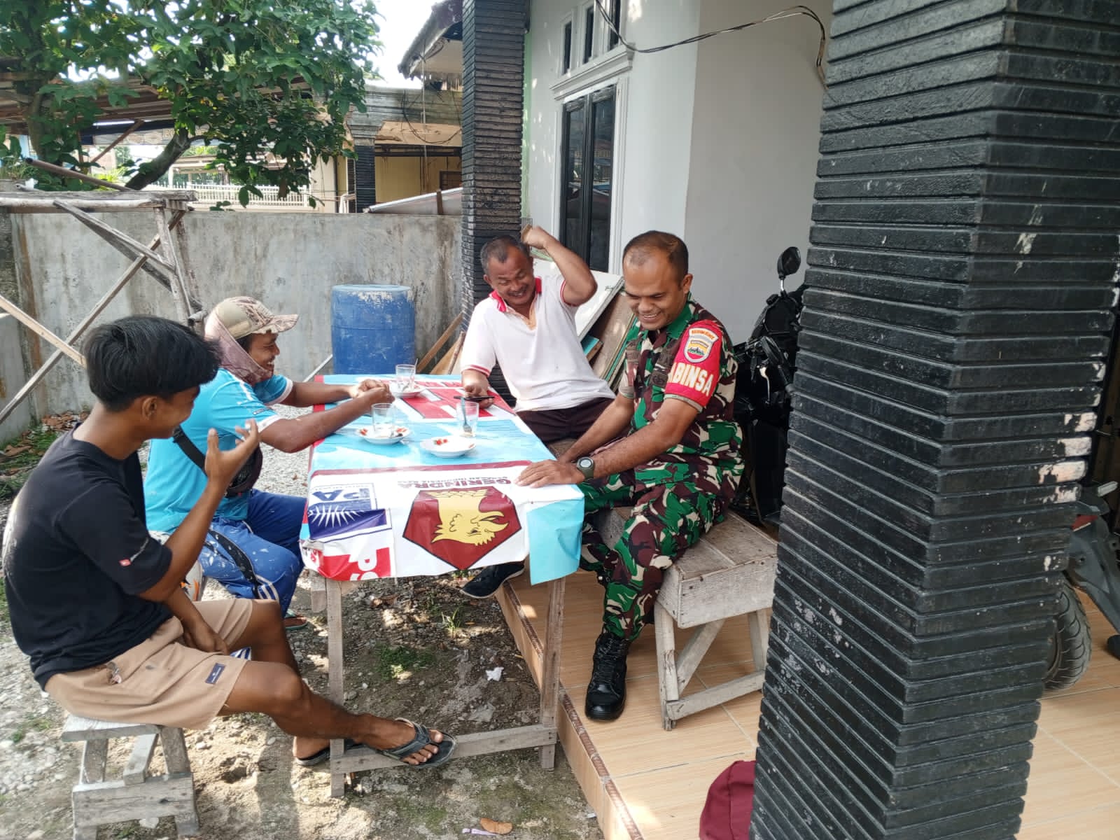 Babinsa Serma Widi Ngopi Bareng Warga, Dengarkan Keluhan Kamtibmas di Perhentian.