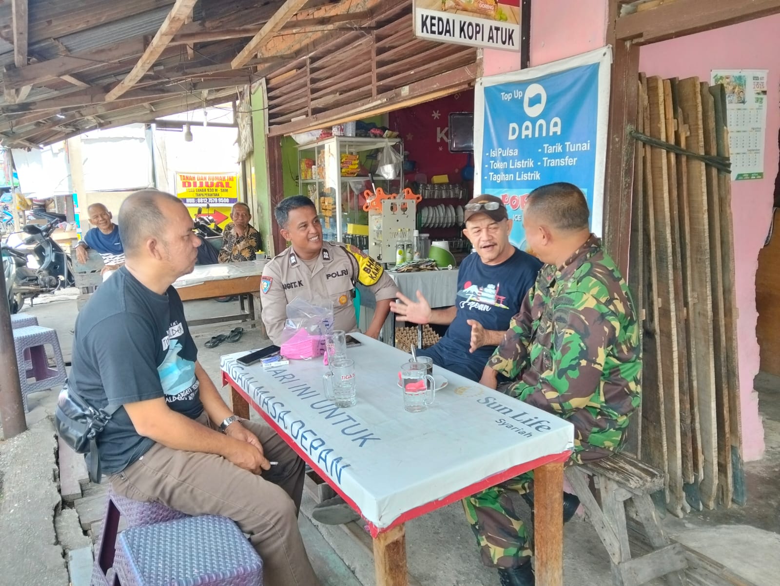 Ngopi di Kedai Atuk, Serma Budi Mulia Bersama Bhabinkamtibmas dan Ketua RW 03 Jalin Keakraban Lewat Obrolan.
