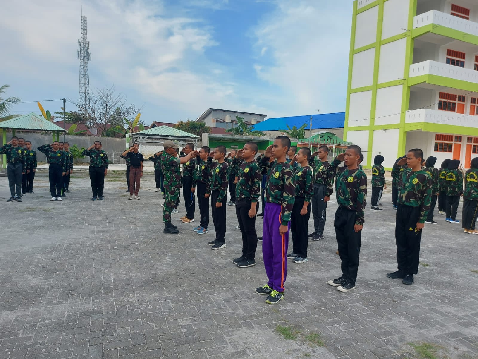 Serka Wiyono Latih Formasi Baris-Berbaris Siswa SMK Taruna Satria Pekanbaru agar Rapi dan.