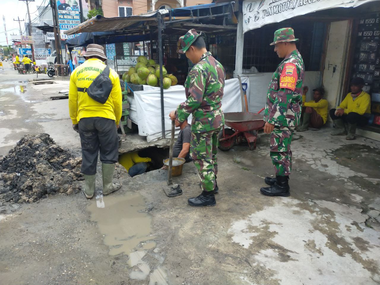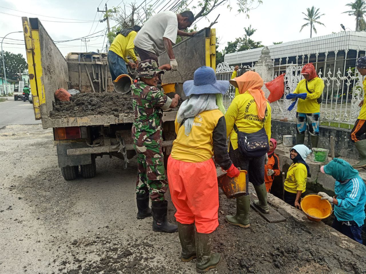 Gotong royong normalisasi parit di Jalan K H Ahmad Dahlan yang berada diwilayah Kelurahan Kampung Melayu Kecamatan Sukajadi terus dilakukan setiap hari oleh Personil Kodim 0301/PBR bersama puluhan pasukan kuning Dinas Lingkungan Hidup dan Kebersihan.