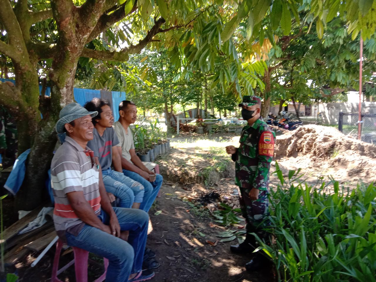 Babinsa Koramil 06/Sukajadi Kodim 0301/PBR, Serda J H Pasaribu dan Babhinkamtibmas Polsek Tampan saling bersinergi melaksanakan komunikasi sosial dengan perangkat Kelurahan di Jalan Kubang Raya Kelurahan Tuah Madani Kecamatan Tuah Madani, Selasa.